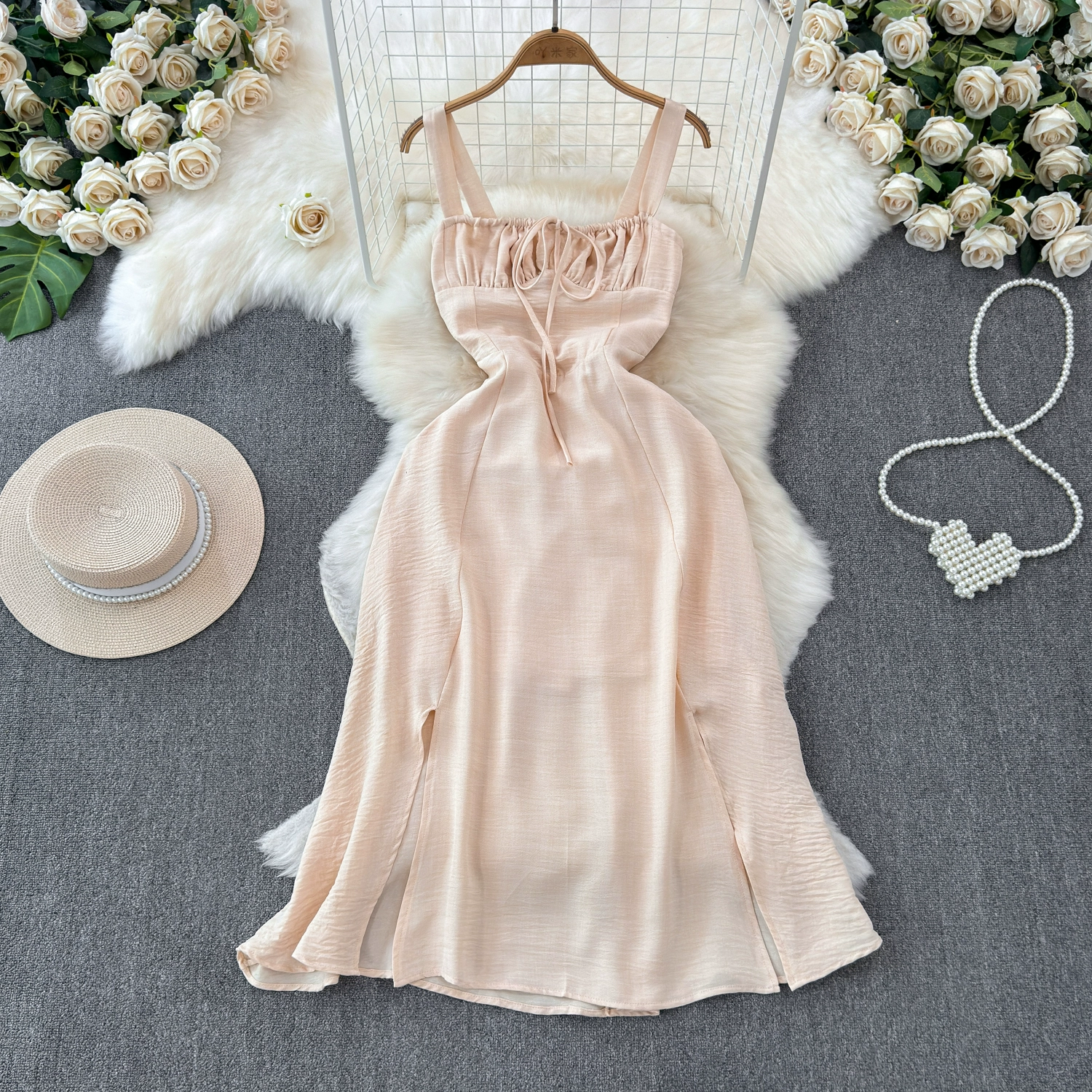 | nameOriginal | Summer French high-end travel photo long dress for seaside vacation backless waist slimming A-line suspender dress |