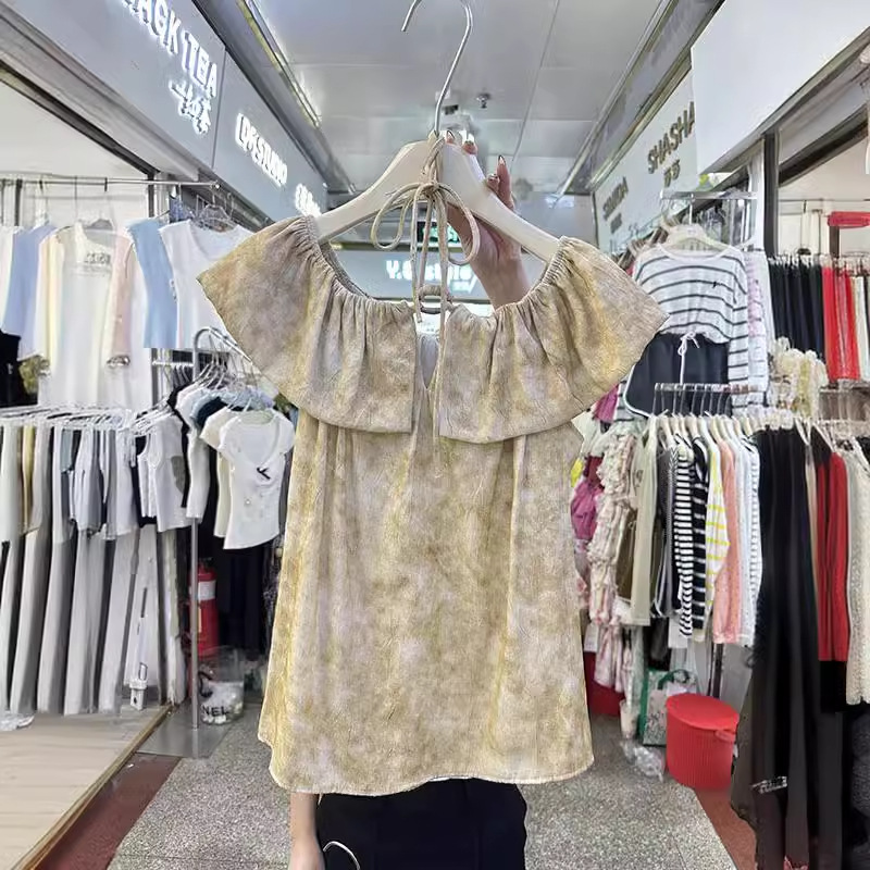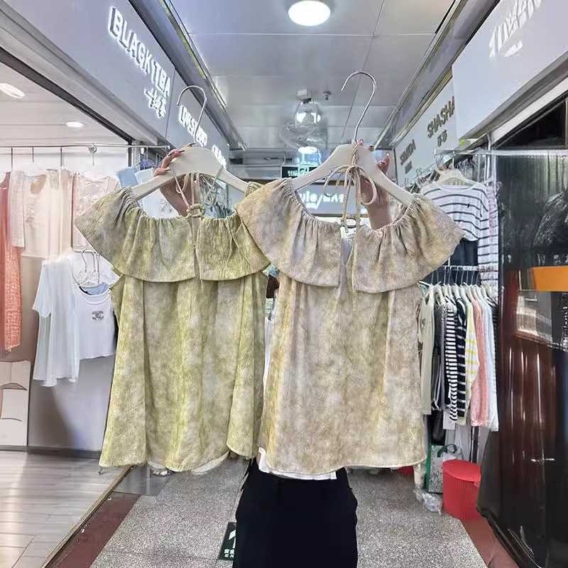 | nameOriginal | Summer French Style Design Elegant Short-sleeved Shoulder Neck T-shirt Women's Pure Sweet Spice Girl Niche Top |