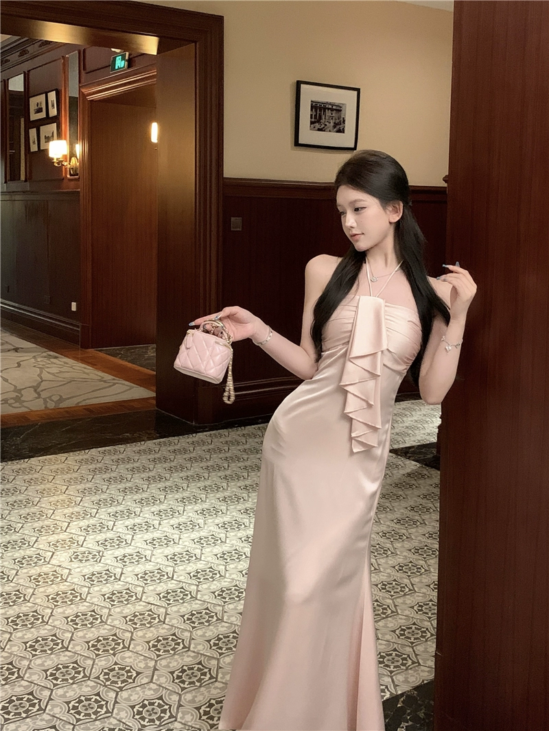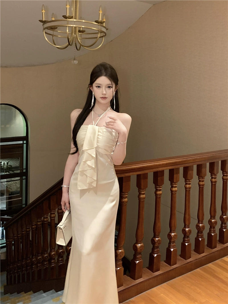 | nameOriginal | Summer French style exquisite satin backless halter dress |
