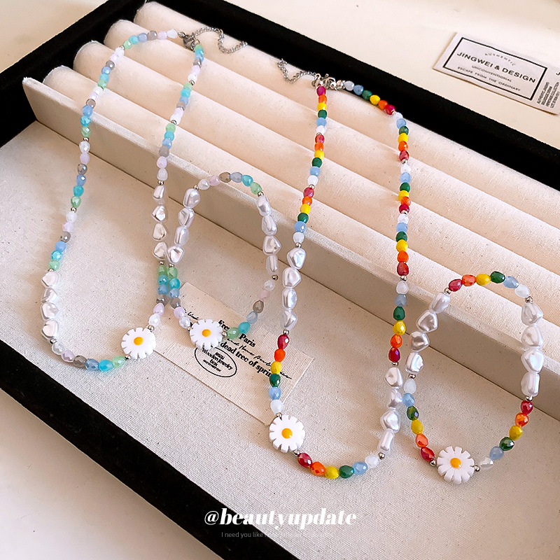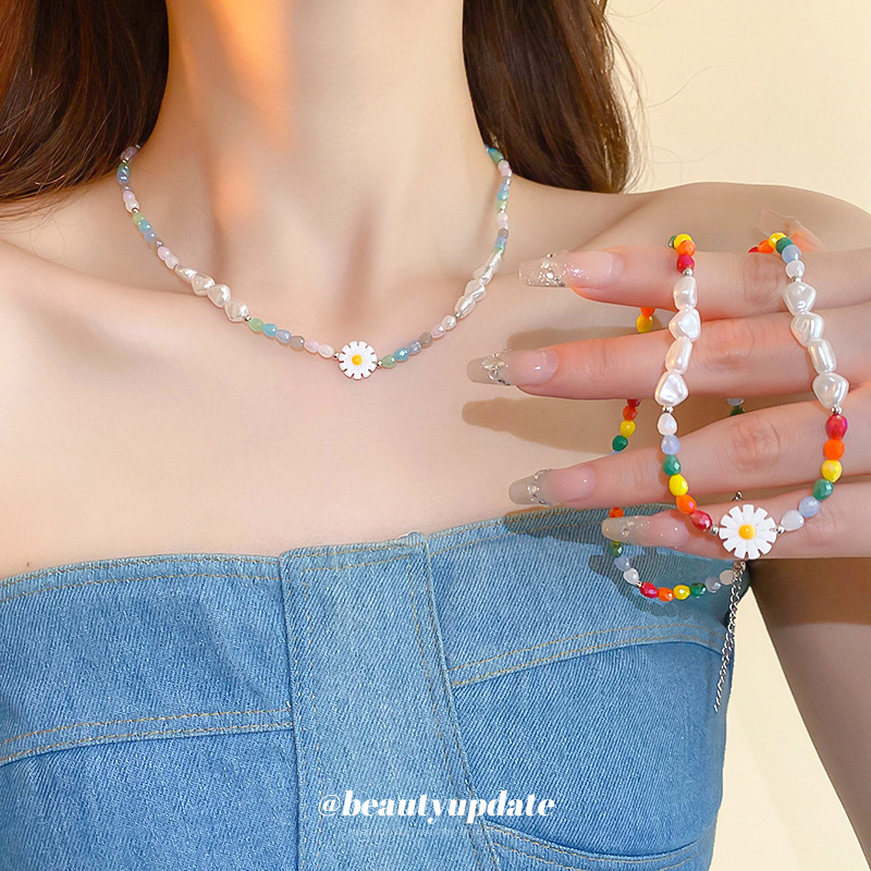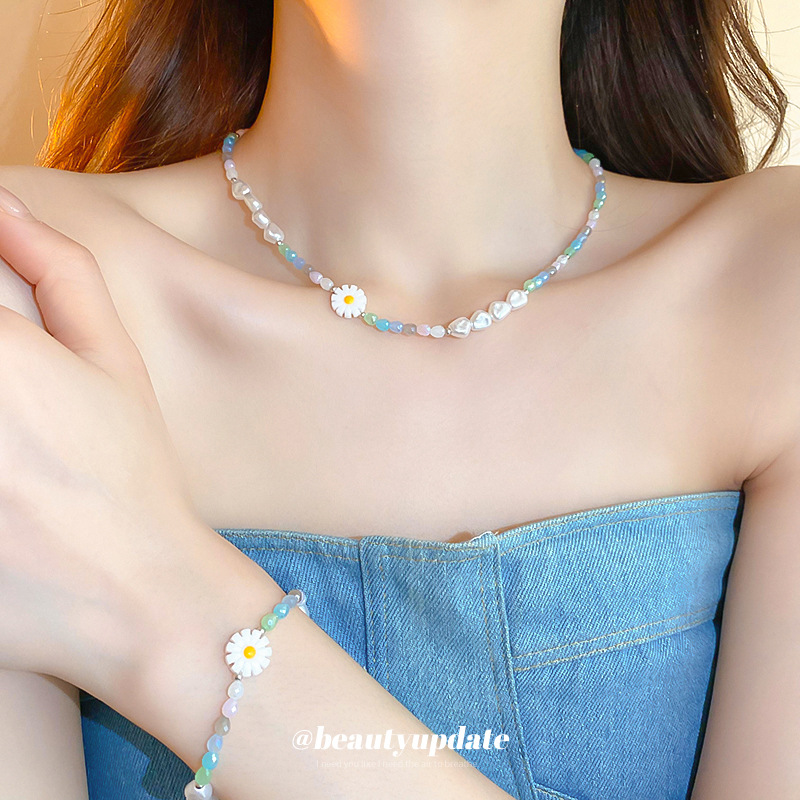 Summer Fresh Daisy Pearl Beaded Bracelet Mori Sweet All-match Bracelet Explosive Cute Girl's Heart Bracelet