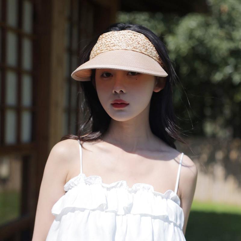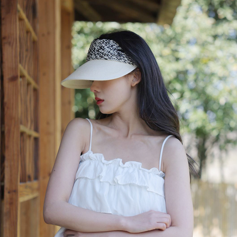 | nameOriginal | Summer Full Face Sun Protection Woven Straw Hat Women's Outdoor Travel UV Protection Breathable Face Showing Small Empty Top Hat |