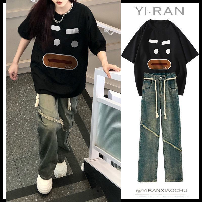 | nameOriginal | Summer Gentle Wear Women's 2023 New Korean-style Design Sense Niche Expression T-shirt High Waist Jeans Two-piece Set |