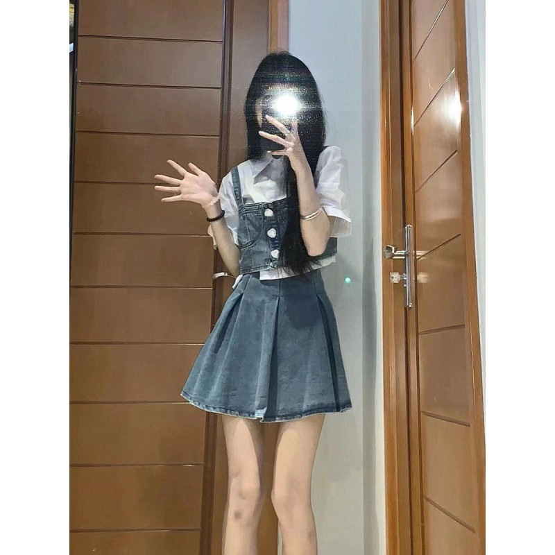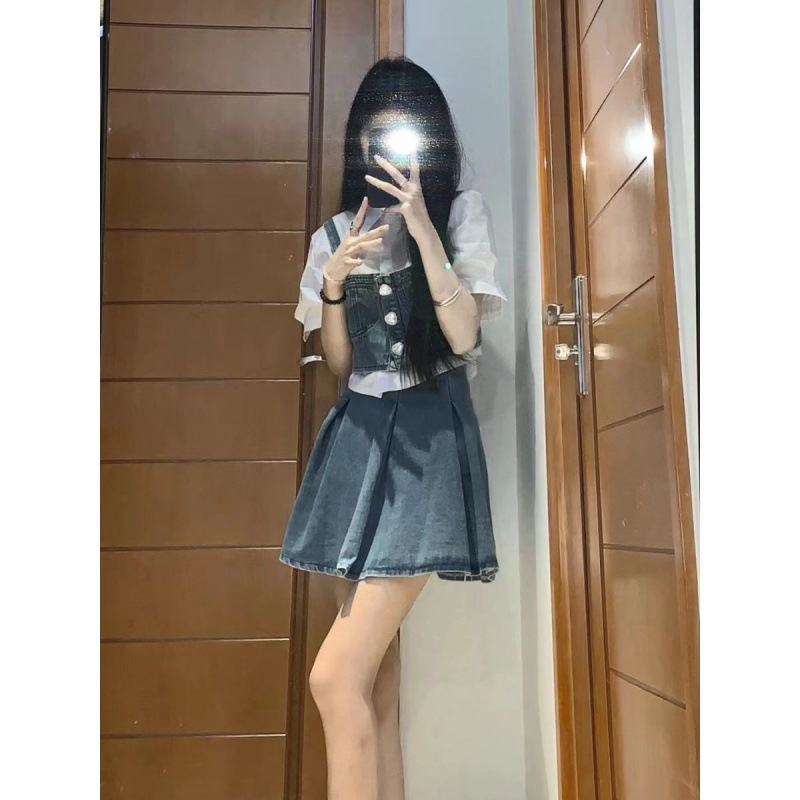 | nameOriginal | Summer Gentle Wear Women's 2024 New Arrival Korean Style Fashionable All-Match Strap Short-Sleeved Denim Skirt Three-Piece Set |