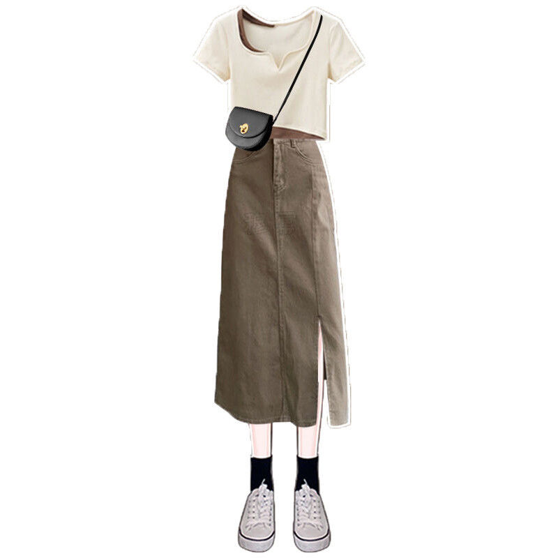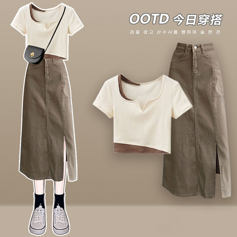 Summer Gentle Wear Women’s 2024 New Korean Style Elegant Loose All-match Short Sleeve Top Skirt Two-piece Set