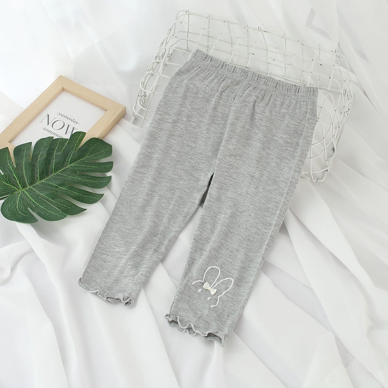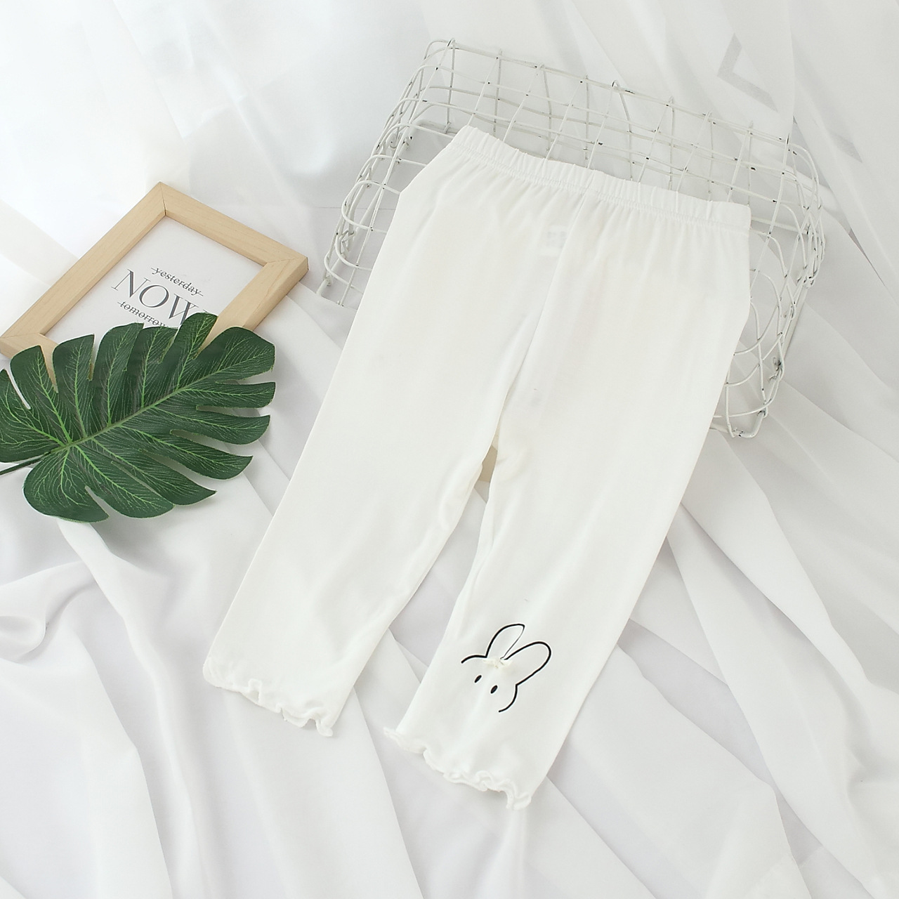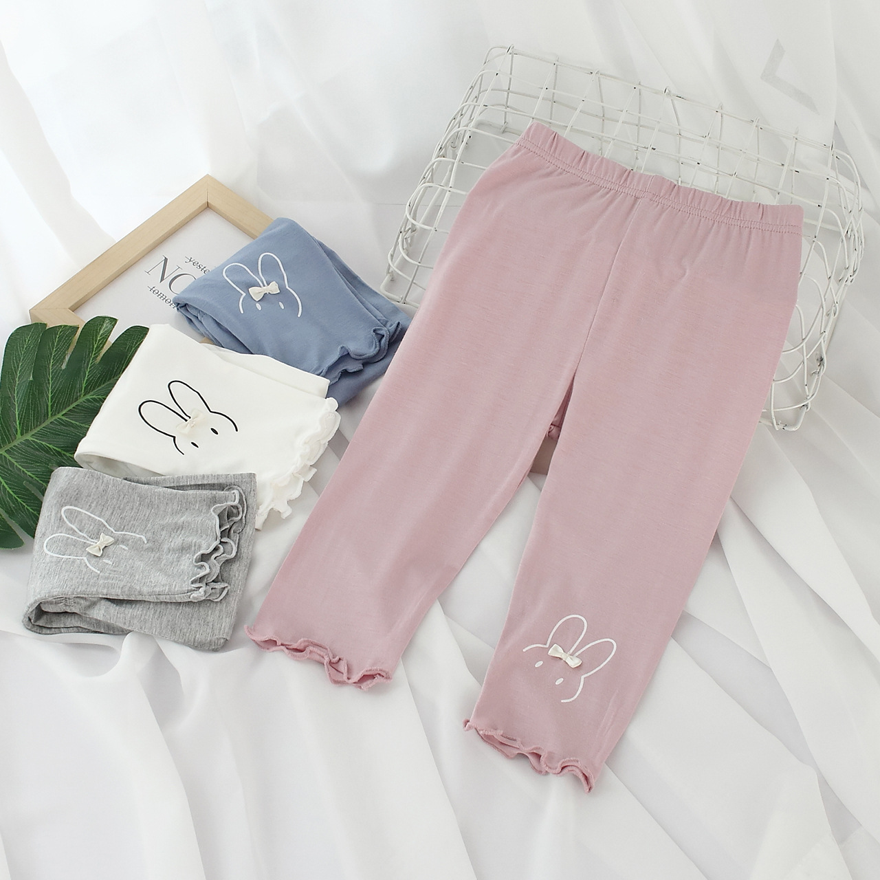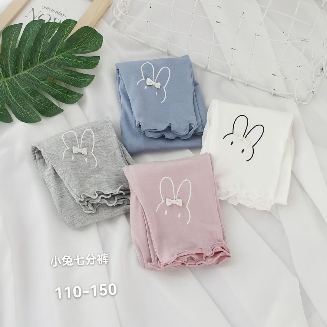 Summer girls lace cropped pants Korean cartoon rabbit girls modal cropped leggings atn4228