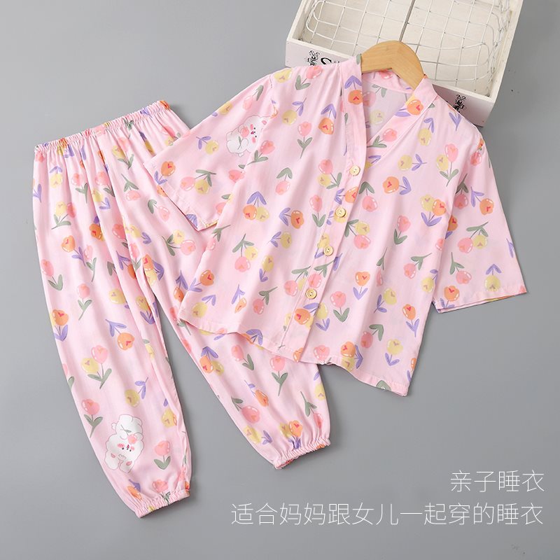 | nameOriginal | Summer Girls Seven-point Sleeve Cotton Silk suit Thin Children Boys Cotton Silk Pajamas Baby Boys Air Conditioning Home Clothes |