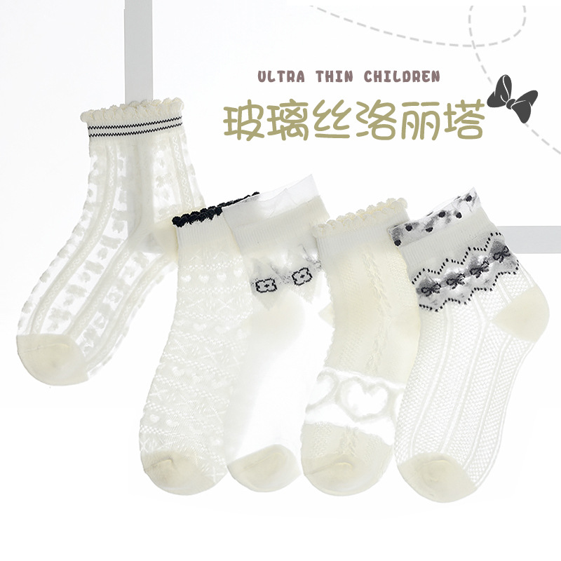 | nameOriginal | Summer girls socks thin black and white Lolita cool cotton socks breathable sweet princess wind children's boat socks wholesale |