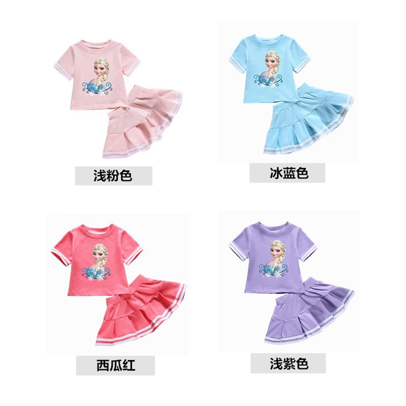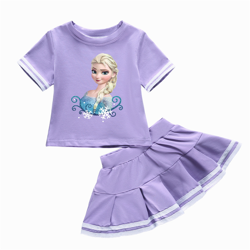 | nameOriginal | Summer Girls' T-shirt Skirt Suit Cotton Student School Uniform Casual Children's Sports Suit Ice Princess Children's Wear Thin |