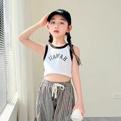 | nameOriginal | Summer Girls' Vest Sling Baby Stylish Children's Personalized Trendy Brand Korean-style Short Color-block Letter Street Dance Top |
