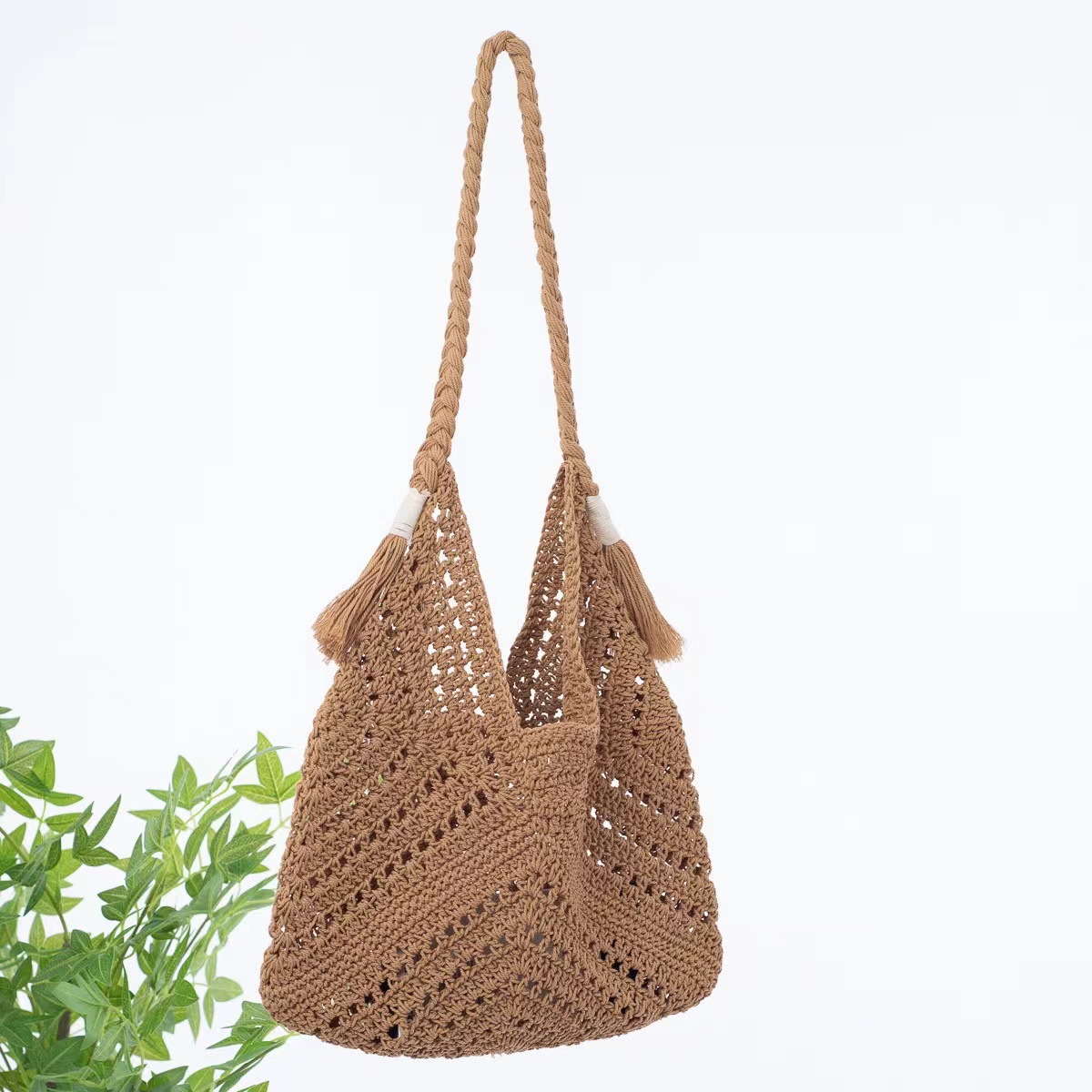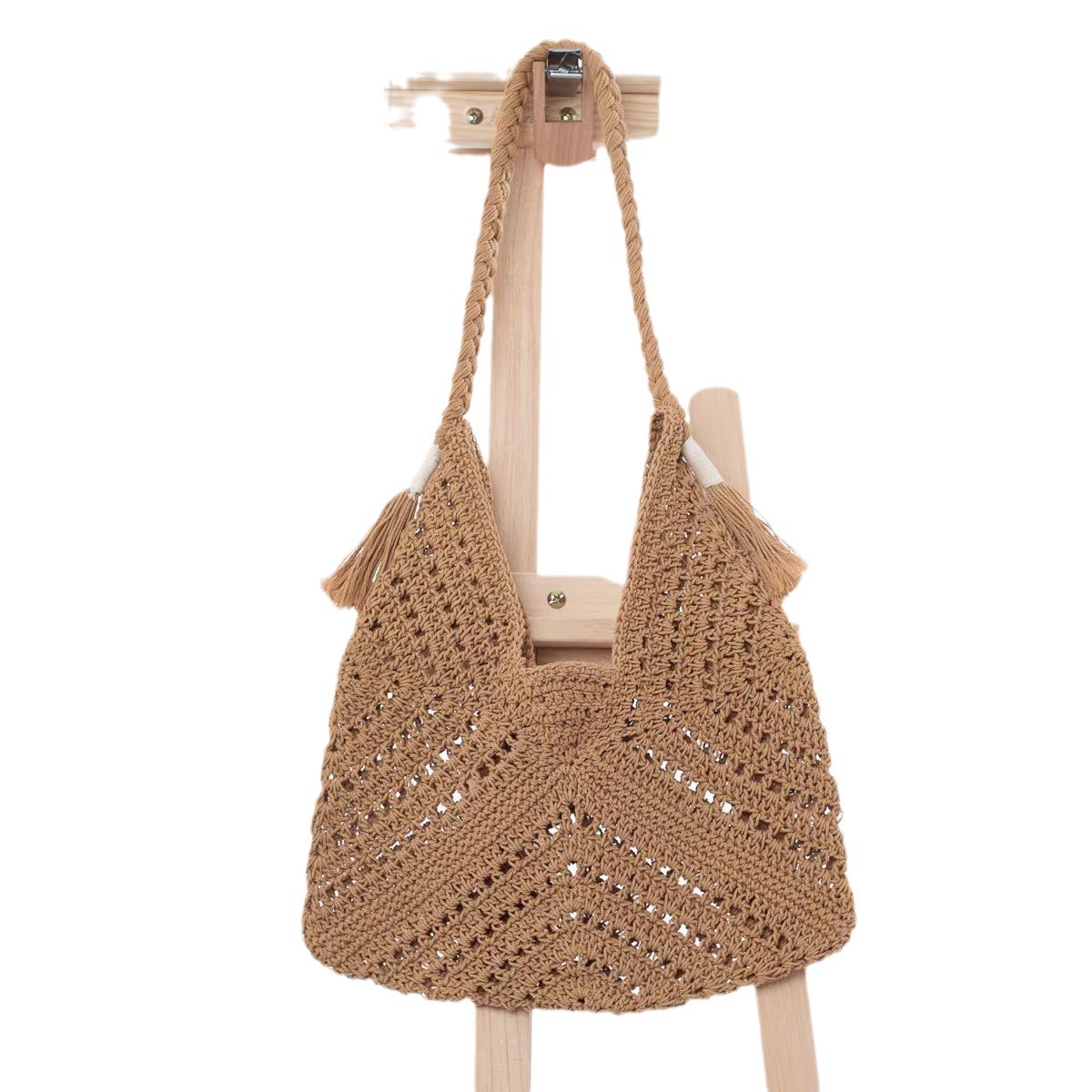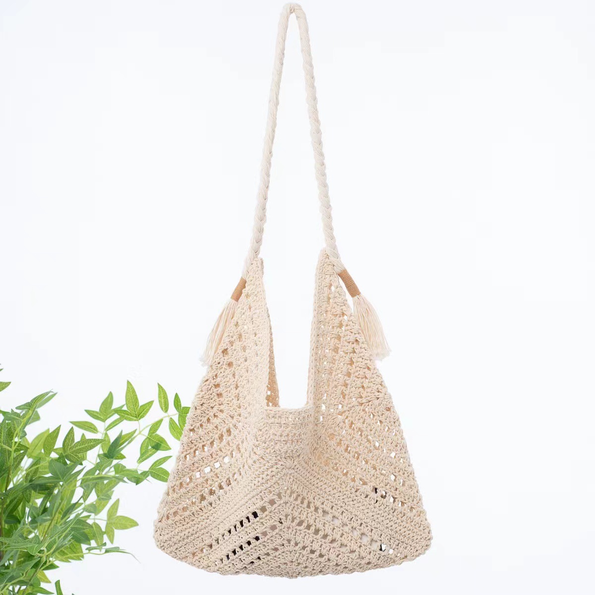 | nameOriginal | Summer hand-woven crochet cotton thread hollow square flower tassel artistic style straw woven one-shoulder handbag |