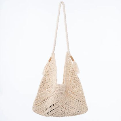 | nameOriginal | Summer hand-woven crochet cotton thread hollow square flower tassel artistic style straw woven one-shoulder handbag |
