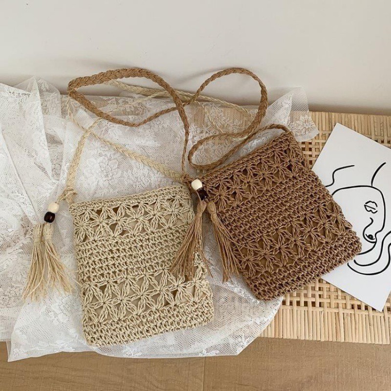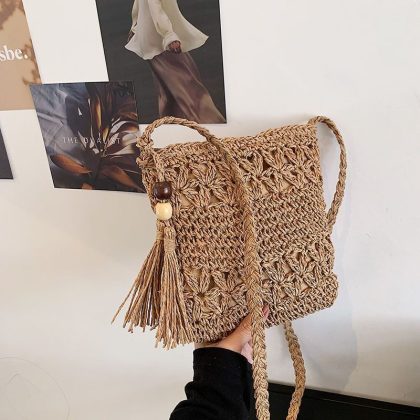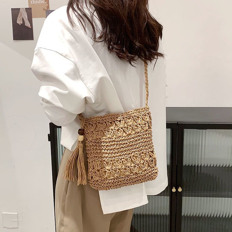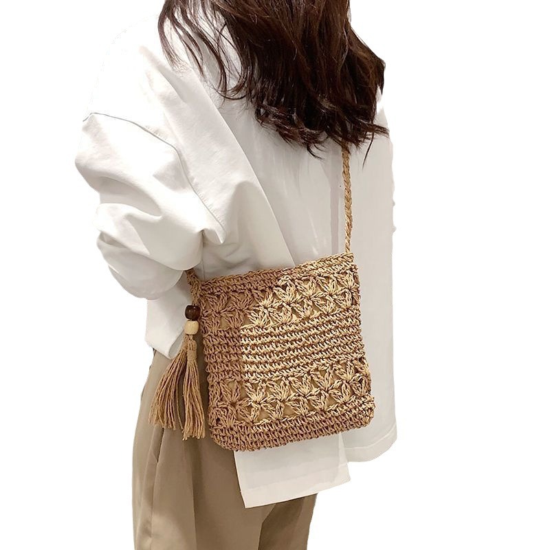 Summer Hand-woven Small Bag All-match Shoulder Crossbody Tassel Straw Bag Hollow Small Bag Mobile Phone Bag