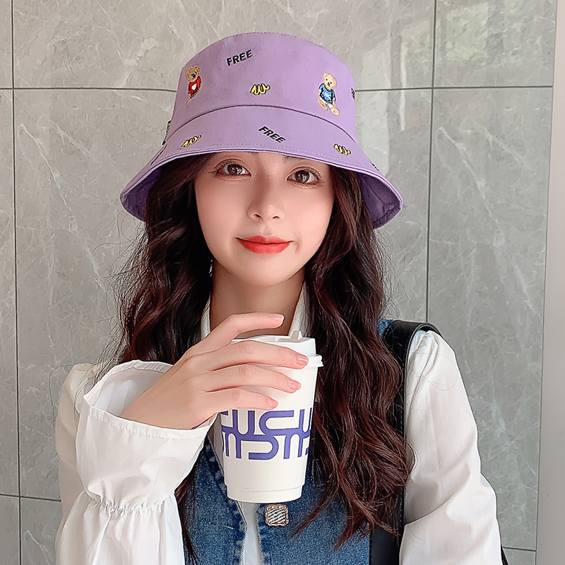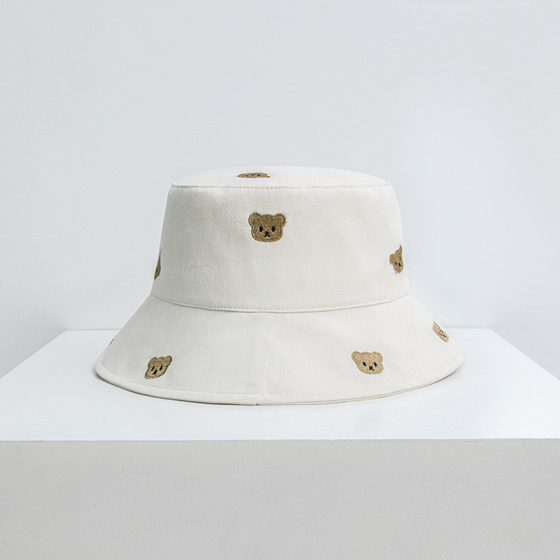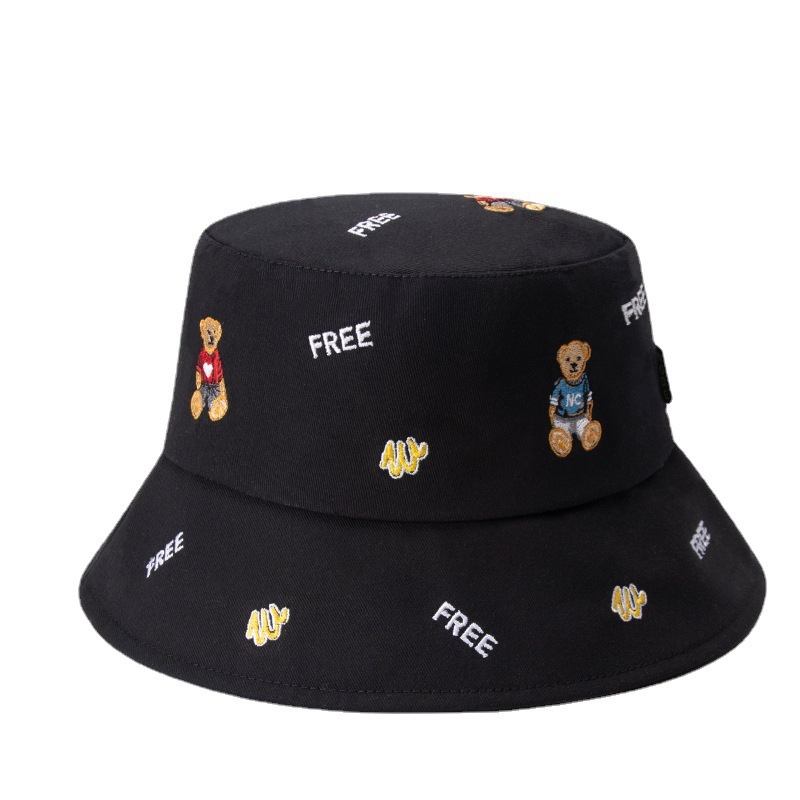 Summer Hat Women’s Korean-style embroidered bear fisherman hat face-looking small sun-proof basin hat versatile outdoor student anti-DDoS hat