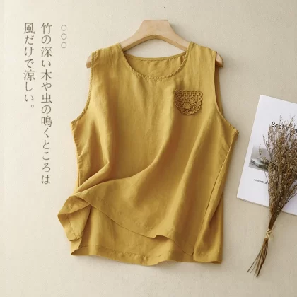 Summer high-end ramie sleeveless loose large size mother's clothing