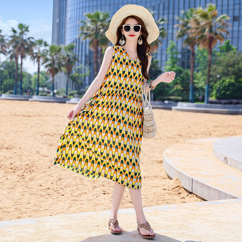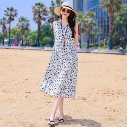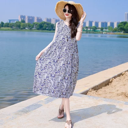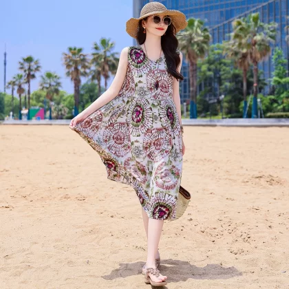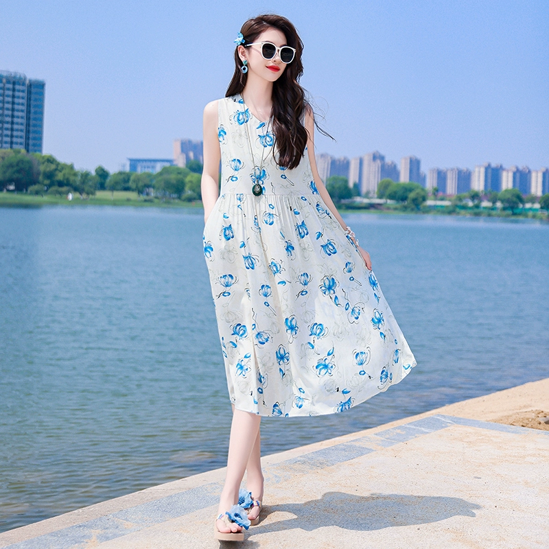 | nameOriginal | Summer high-end vest beach long cotton silk dress |