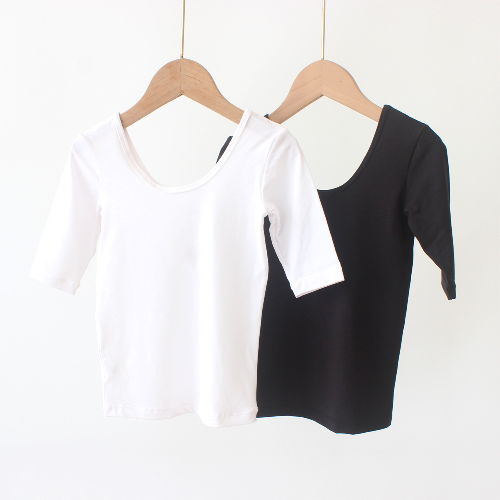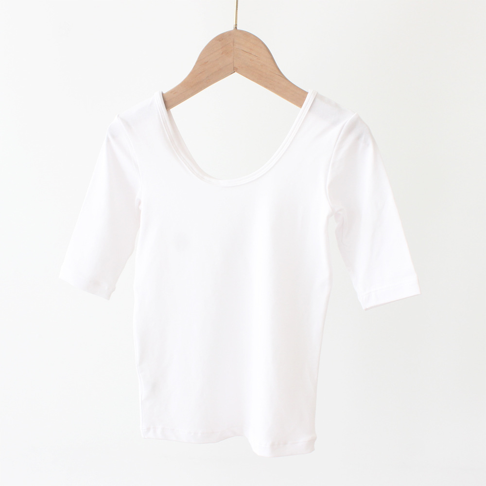 Summer High Quality Modal Children Low Collar Half Sleeve Backless U Collar T-Shirt 5 Sleeve Base Shirt Gymnastics Tight