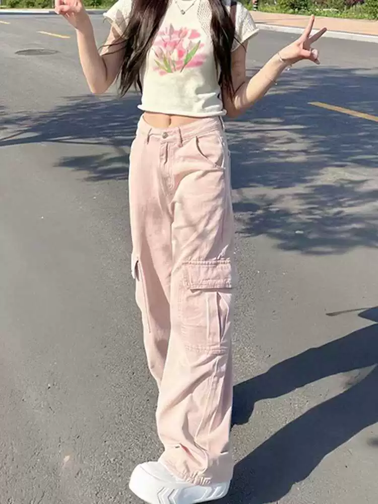 | nameOriginal | Summer high street vibe pink wide-legged thin workwear |