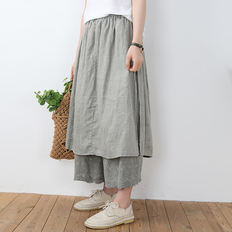 | nameOriginal | Summer high waist Women's Mid-length pantskirt sweet fresh lace stitching A- line dress loose slimming versatile |