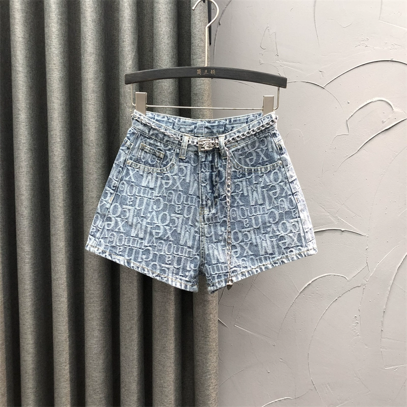 | nameOriginal | Summer high-waisted letter print stylish denim shorts |