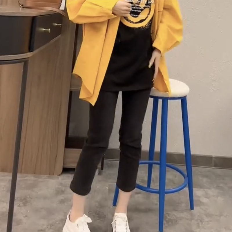 Summer high-waisted slit plus size fat mm nine-point jeans