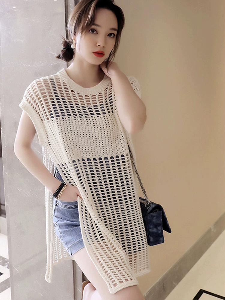 | nameOriginal | Summer hollow knitted vest side slit top |