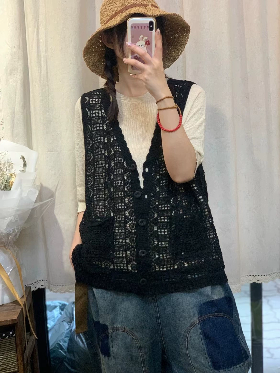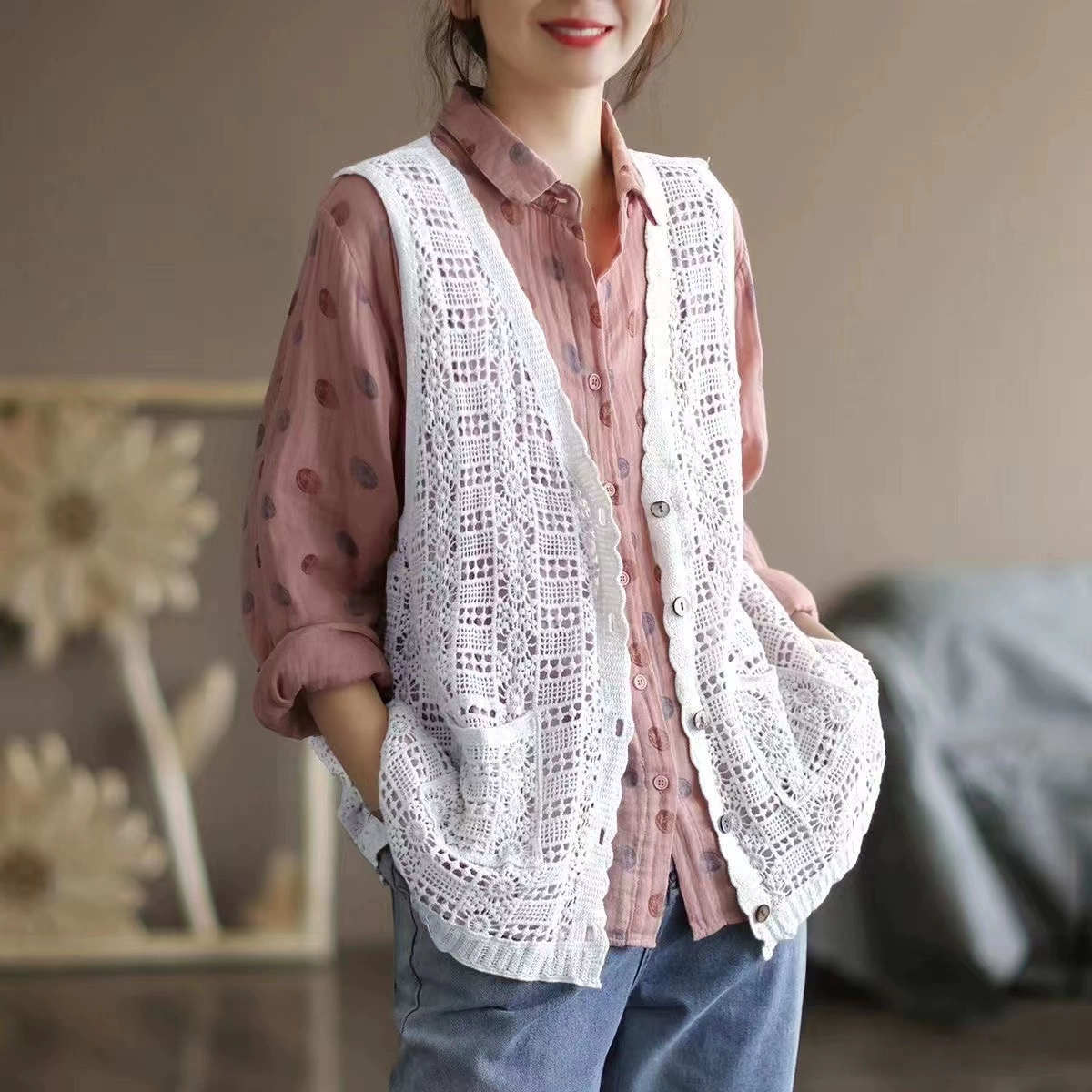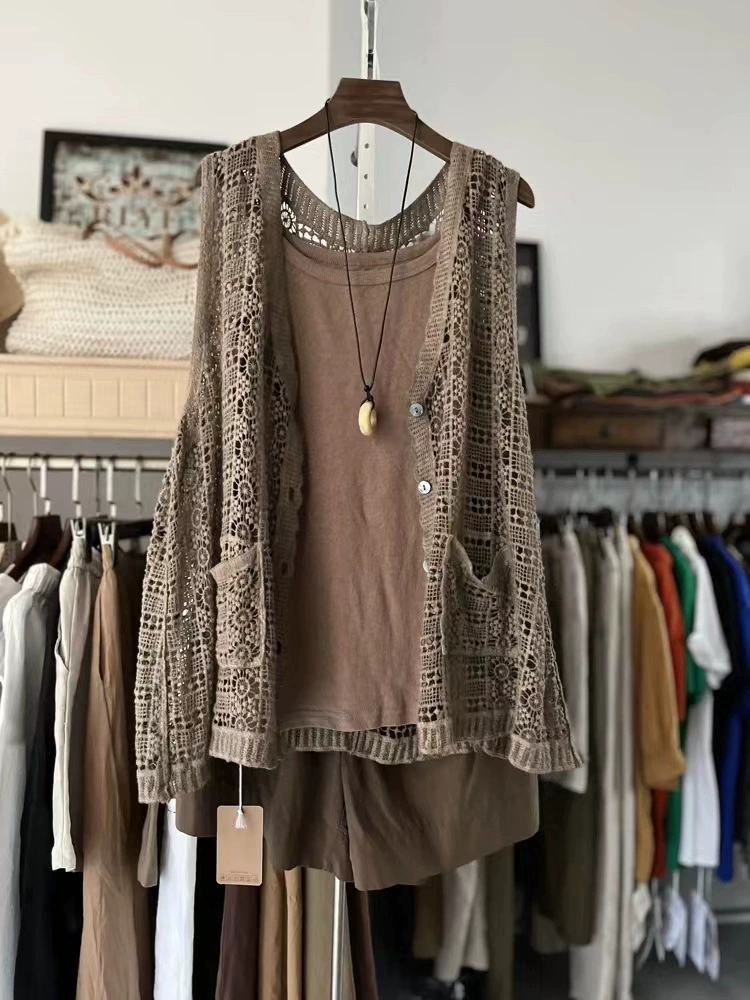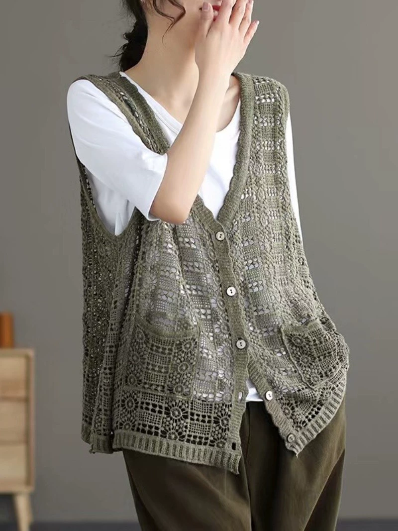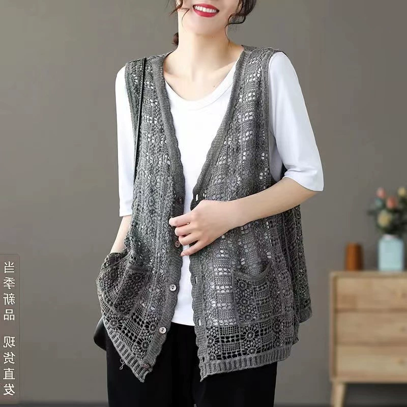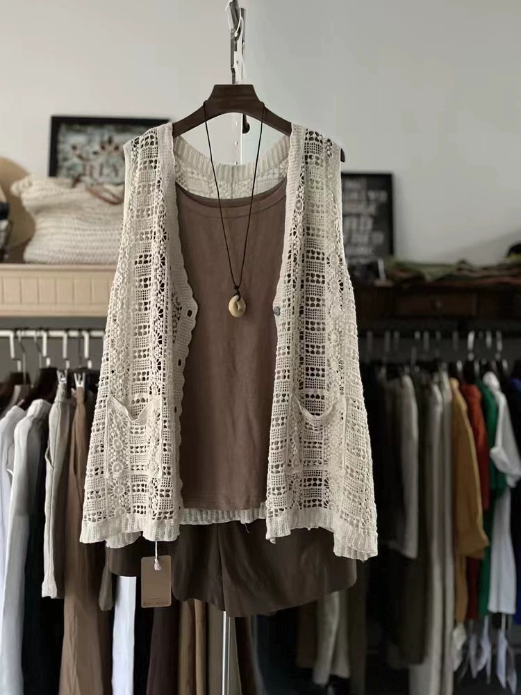 Summer hollow retro casual outer knitted vest