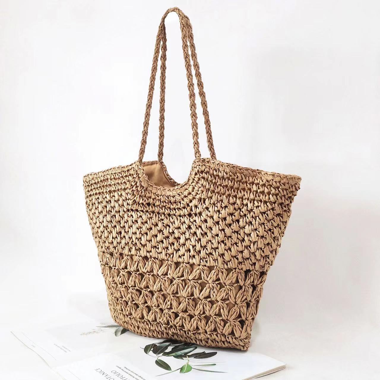 Summer Hollow Woven Bag Shoulder Bag Seaside Vacation Bag Fashion Handmade Bag Artistic Handmade Woven Women's Bag Fashion