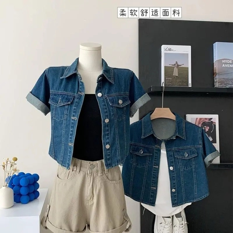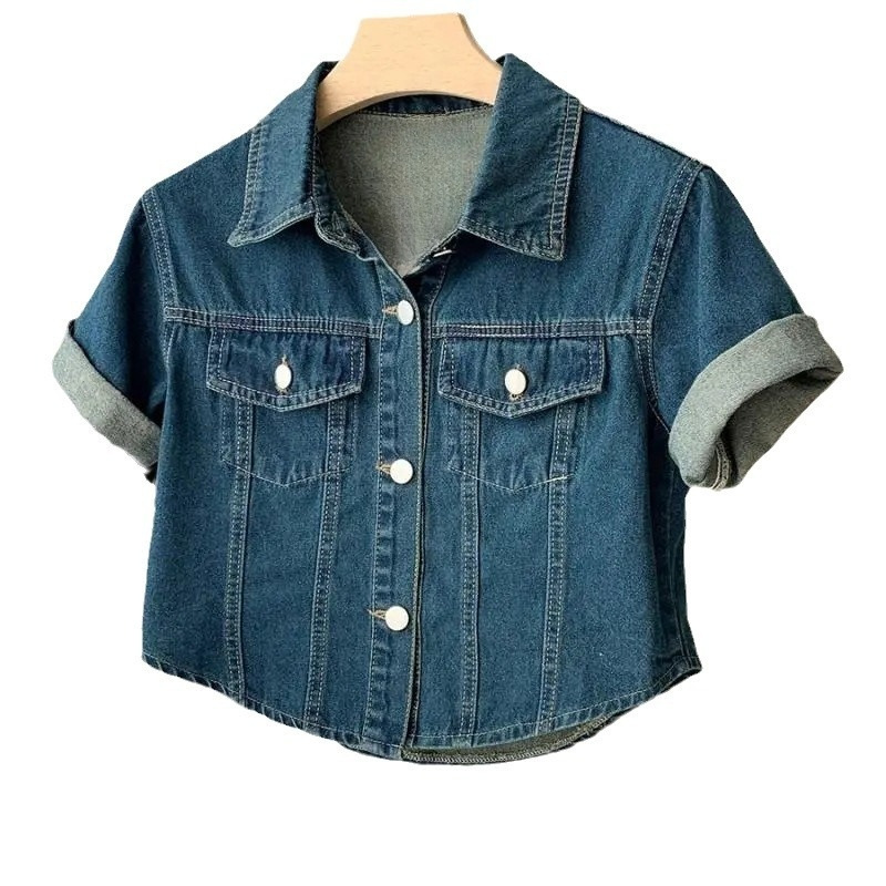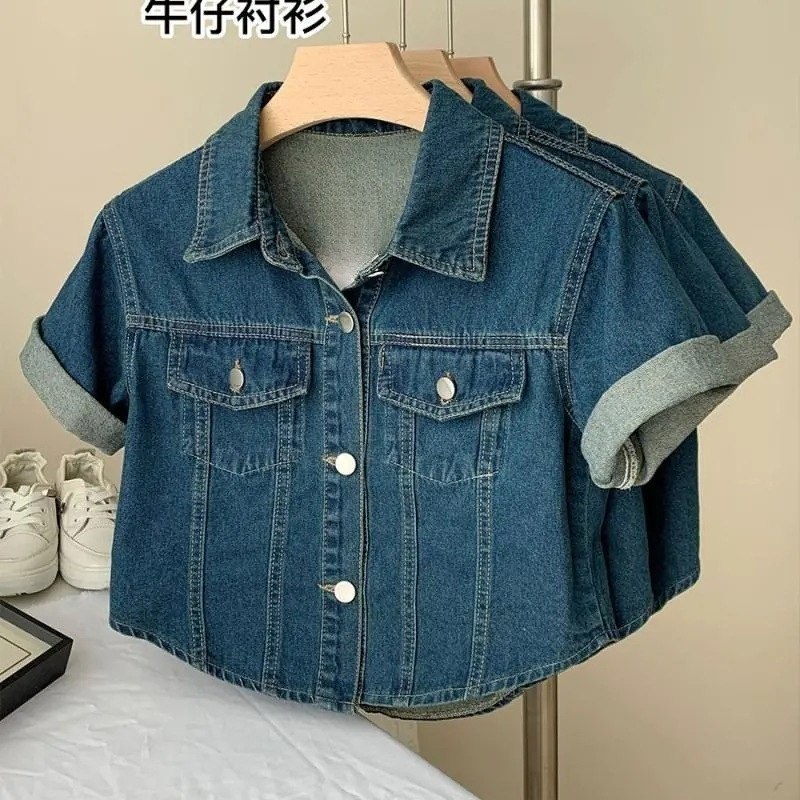 | nameOriginal | Summer Hong Kong Style Vintage Short Lapel Casual Loose Short-sleeved Denim Coat Shirt Women |