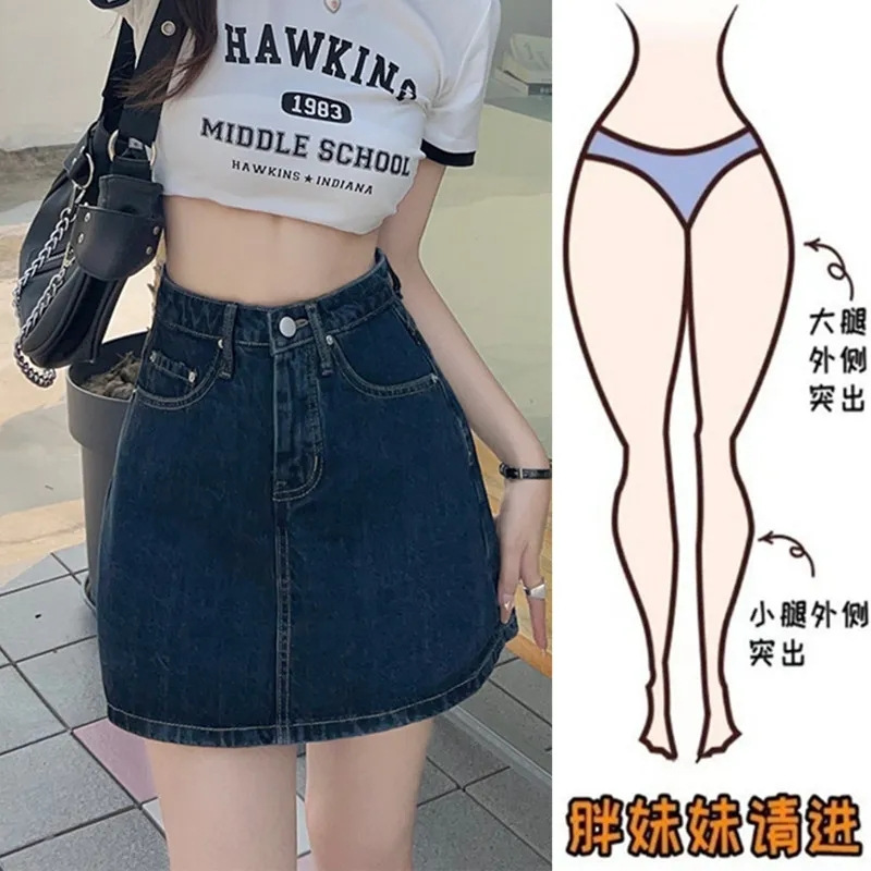 | nameOriginal | Summer Hot Girls Denim Skirt Women's plus size chubby girl Design Sense Fake Two-piece Pants High Waist Slim A- line Skirt |