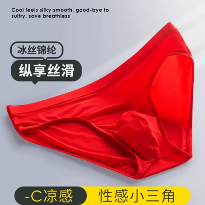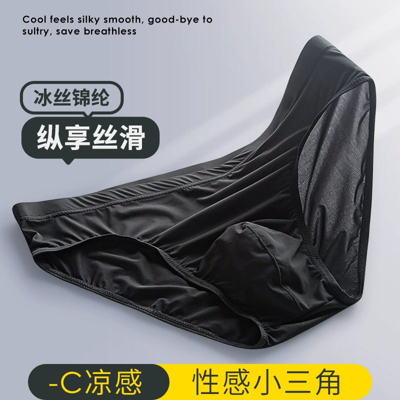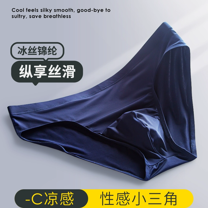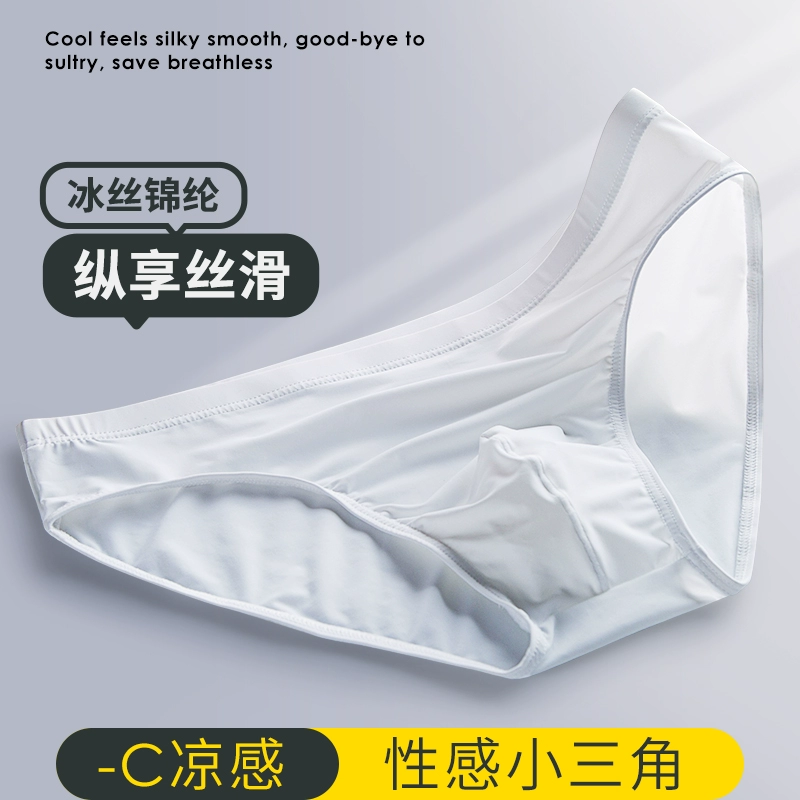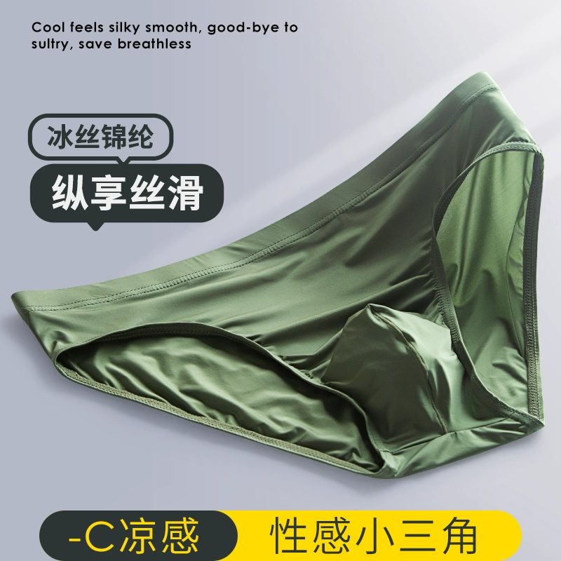 Summer ice silk cool men’s underwear ultra-thin silky smooth quick-drying breathable mid-waist comfortable and sexy green briefs