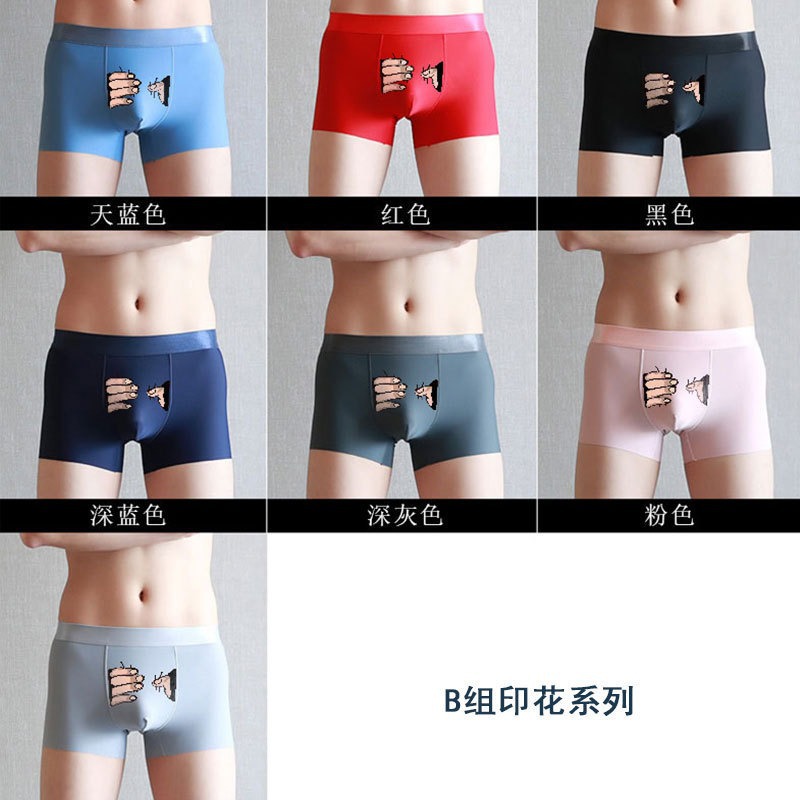 Summer Ice Silk Creative Simple Boxer Men's Underwear Skin-absorbent Sweat-absorbent Breathable Antibacterial Ultra-thin Seamless Boxer Shorts