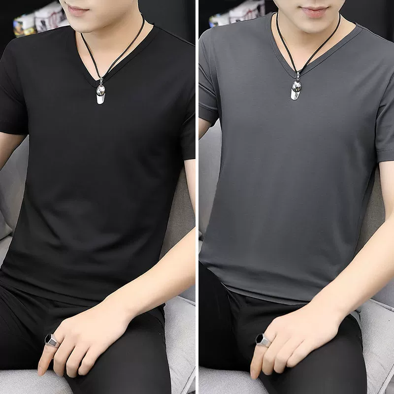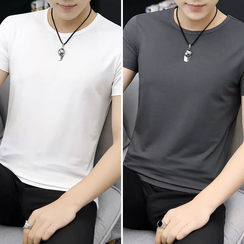 | nameOriginal | Summer ice silk elastic trendy clean half-sleeved T-shirt students solid color short-sleeved T-shirt men's bottoming shirt with clothes T |