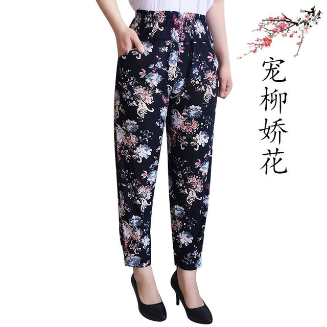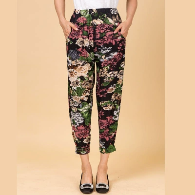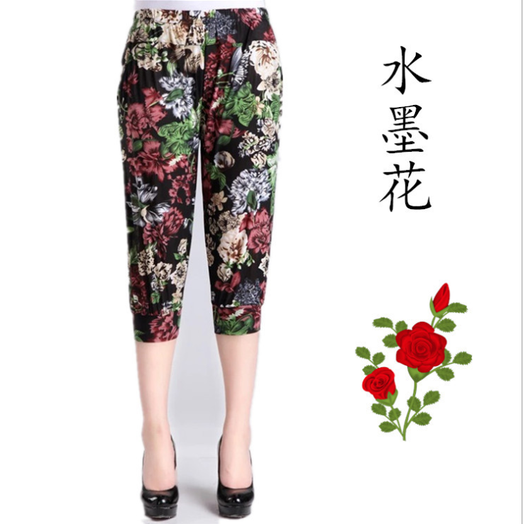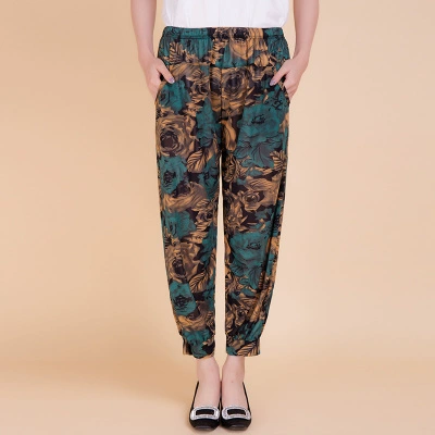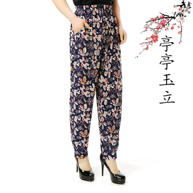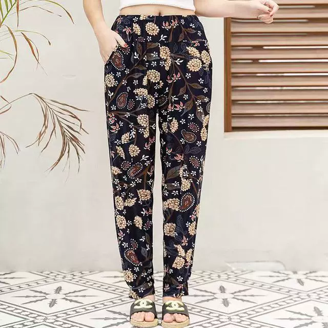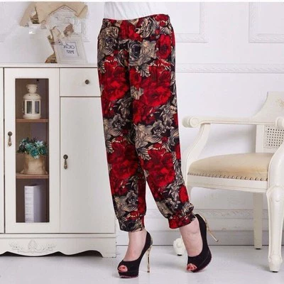 | nameOriginal | Summer ice silk elastic waist ten-color printed mom pants |