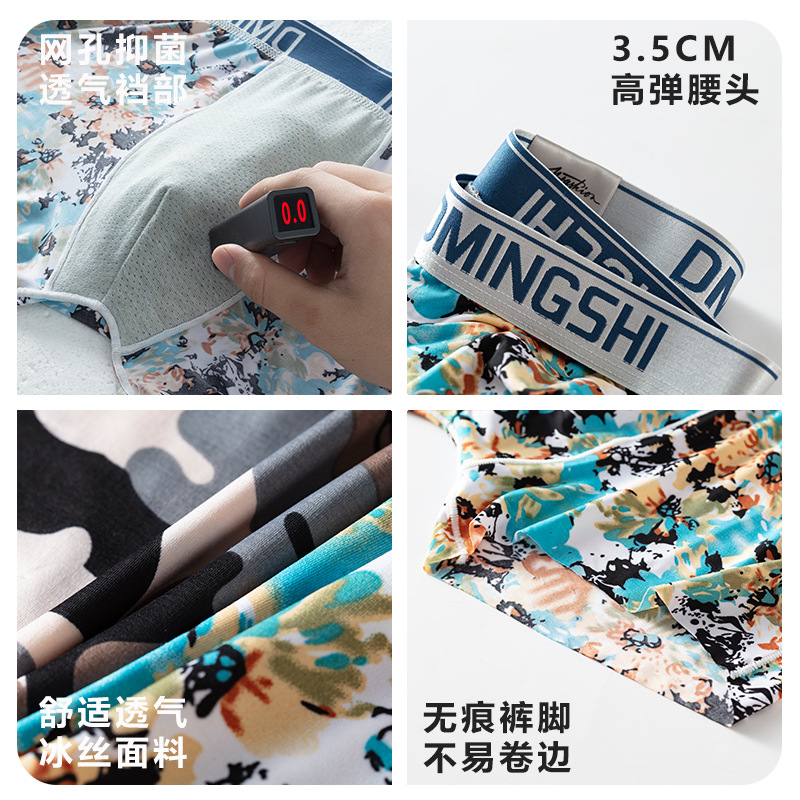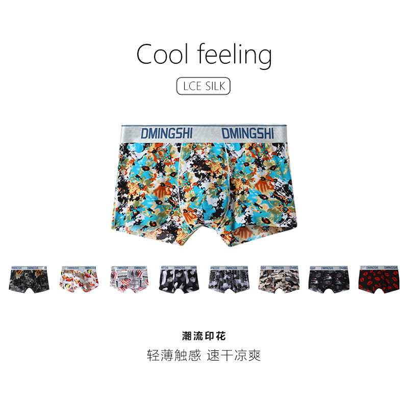 Summer Ice Silk men’s underwear men’s boxer pants thin breathable printing personality four-corner youth underwear spot wholesale