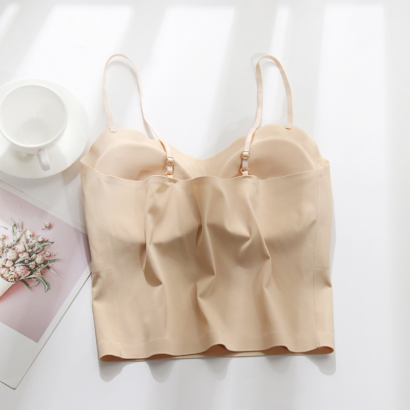 | nameOriginal | Summer Ice Silk Seamless Sling Small Vest with Chest Pad Integrated Cup Bottoming Sports Anti-walking Beautiful Back Underwear for Women |