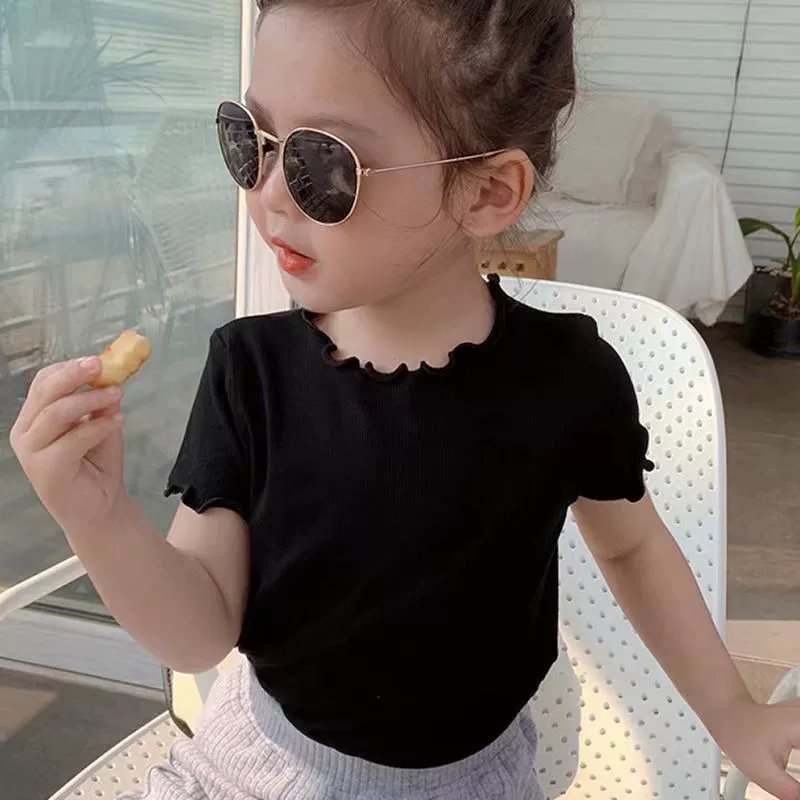 | nameOriginal | Summer ice silk short-sleeved T-shirt Korean version for girls and babies versatile striped fashionable fungus tops for small and medium-sized children thin |