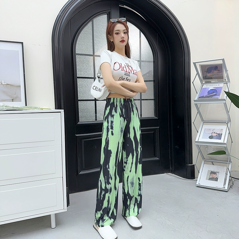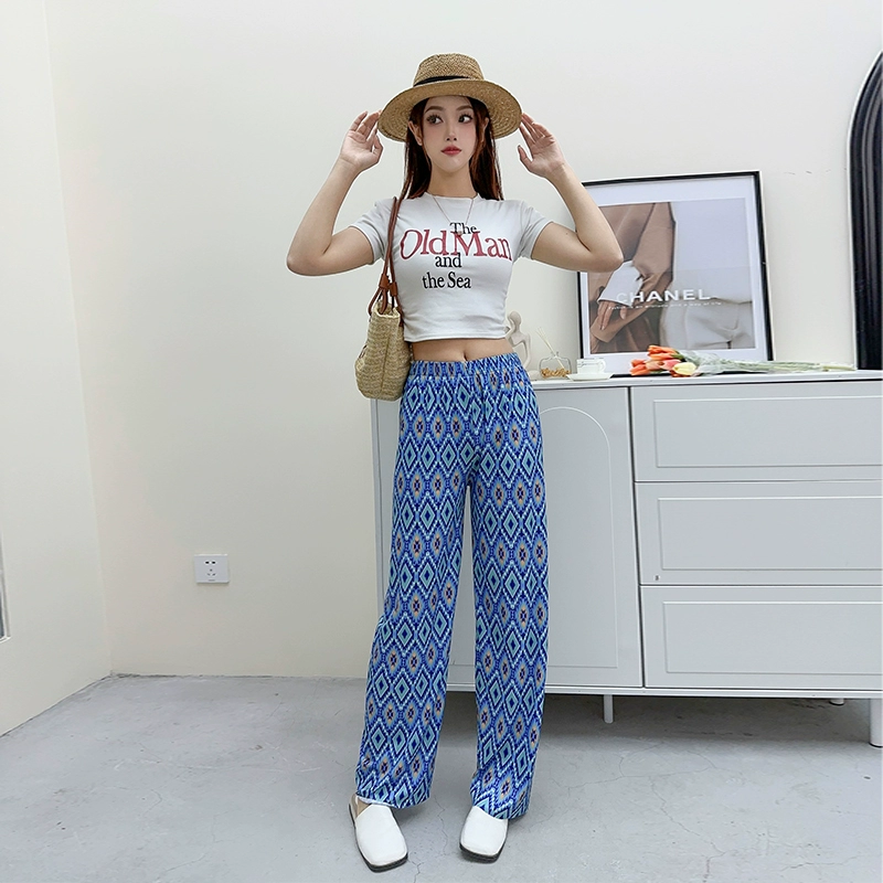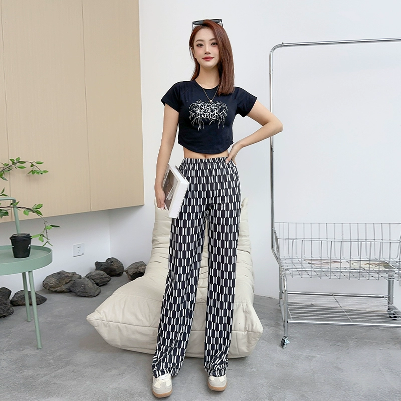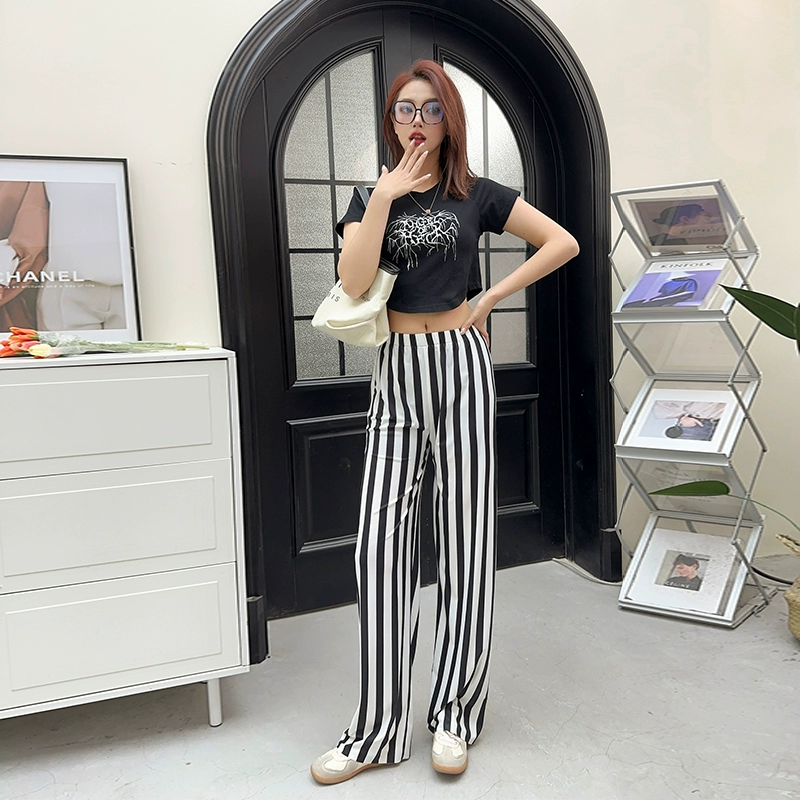 | nameOriginal | Summer ice silk striped checkered large size loose trousers |