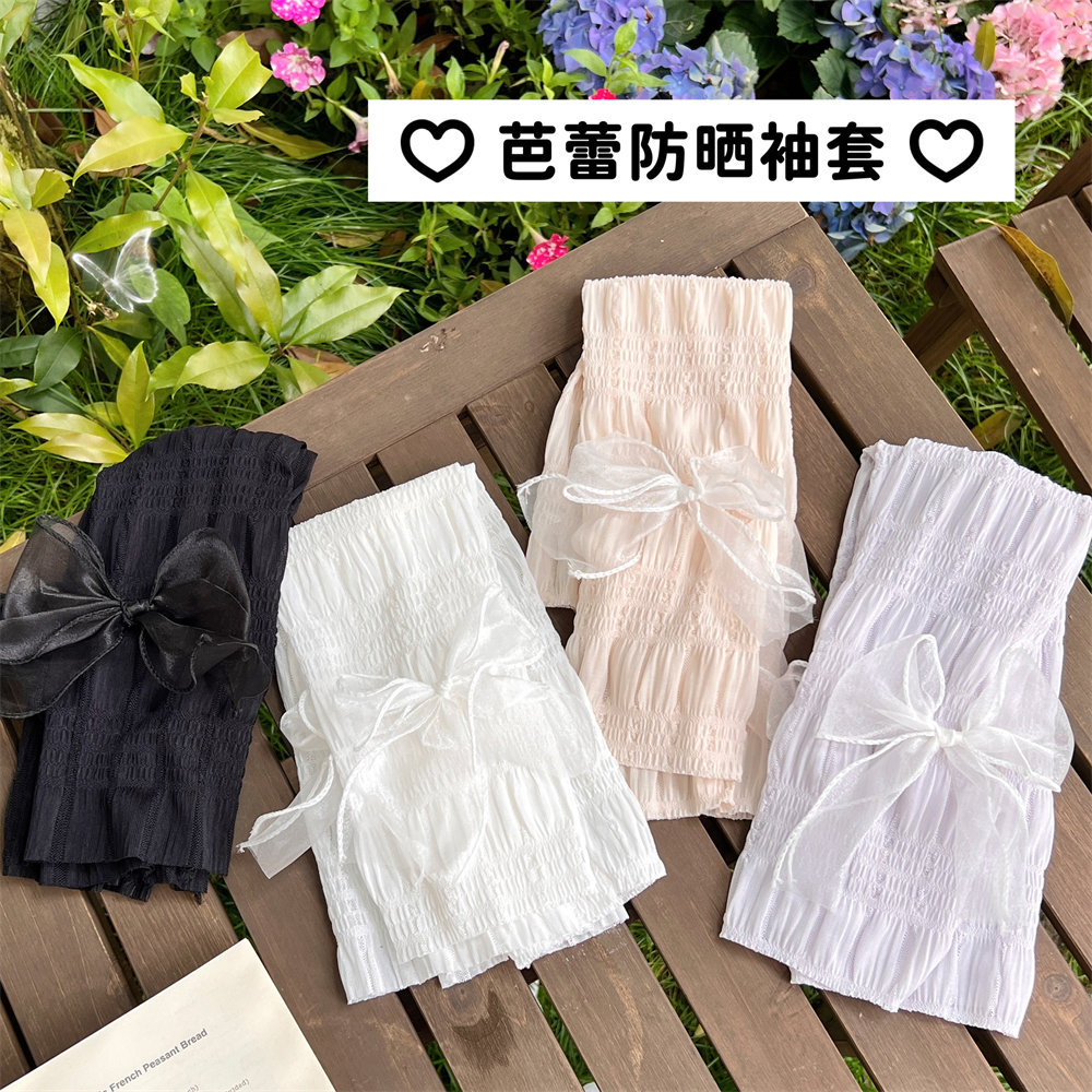 | nameOriginal | Summer ice silk sunscreen sleeves Joker ballet wind girl heart sleeve bow breathable cycling arm sleeve wholesale |