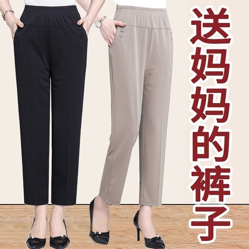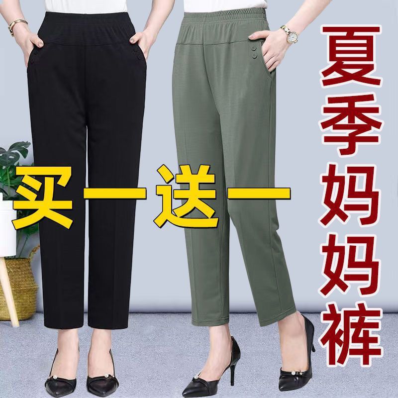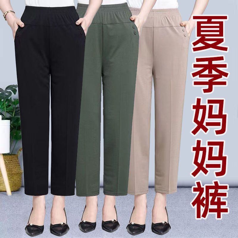 | nameOriginal | Summer Ice Silk Thin Mom Pants Middle-aged and Elderly Casual Straight Cropped Pants Loose High Waist Women's Pants |