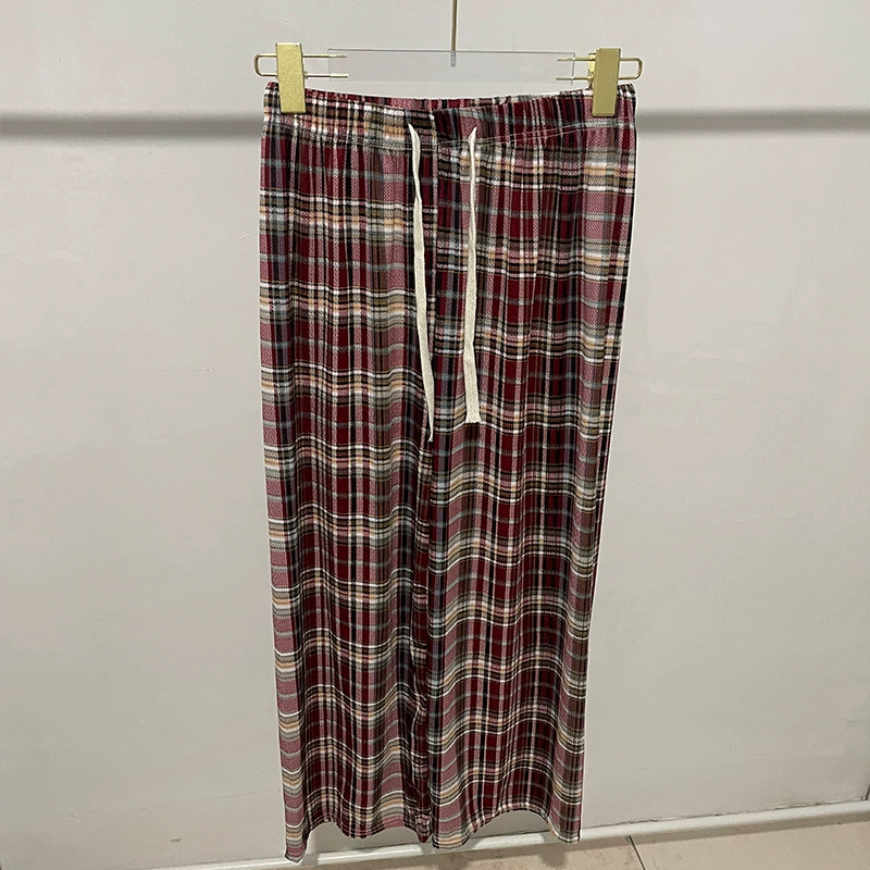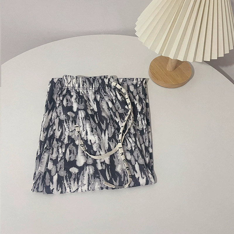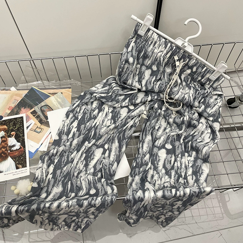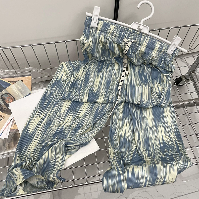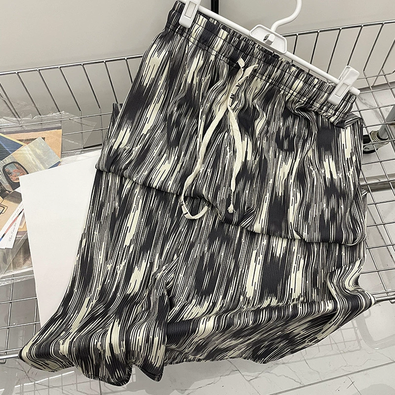 Summer ice silk threaded wide -leg pants, thin waist, high waist, thin, drooping, leisure straight tube extended mopped pants