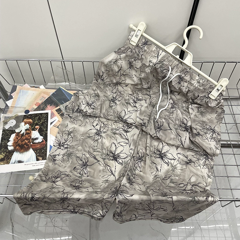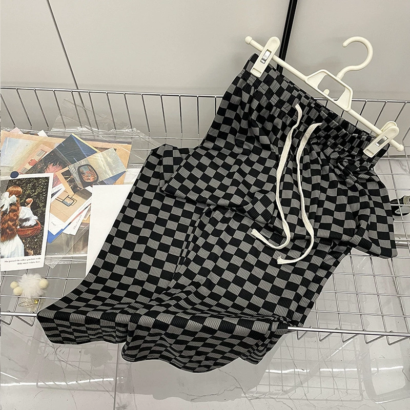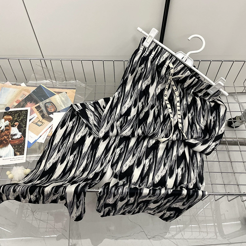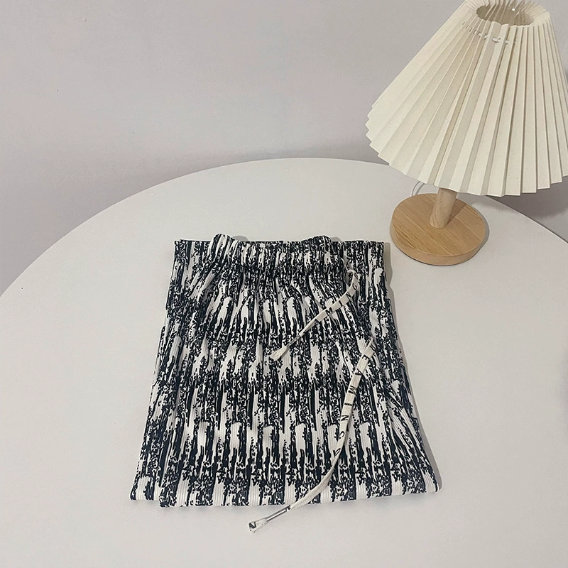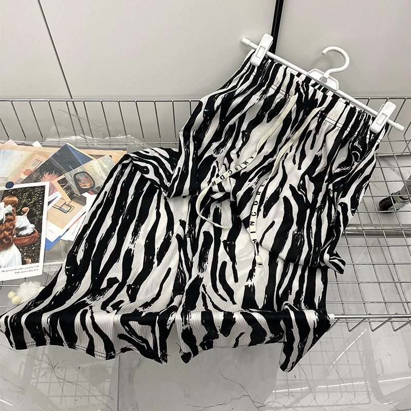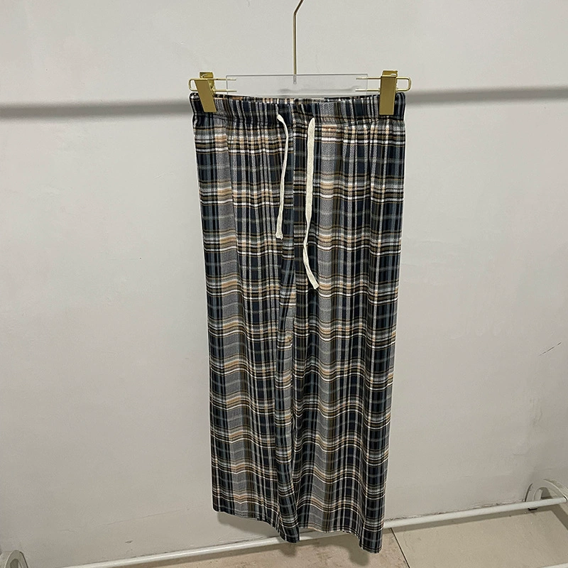 Summer ice silk threaded wide -leg pants, thin waist, high waist, thin, drooping, leisure straight tube extended mopped pants