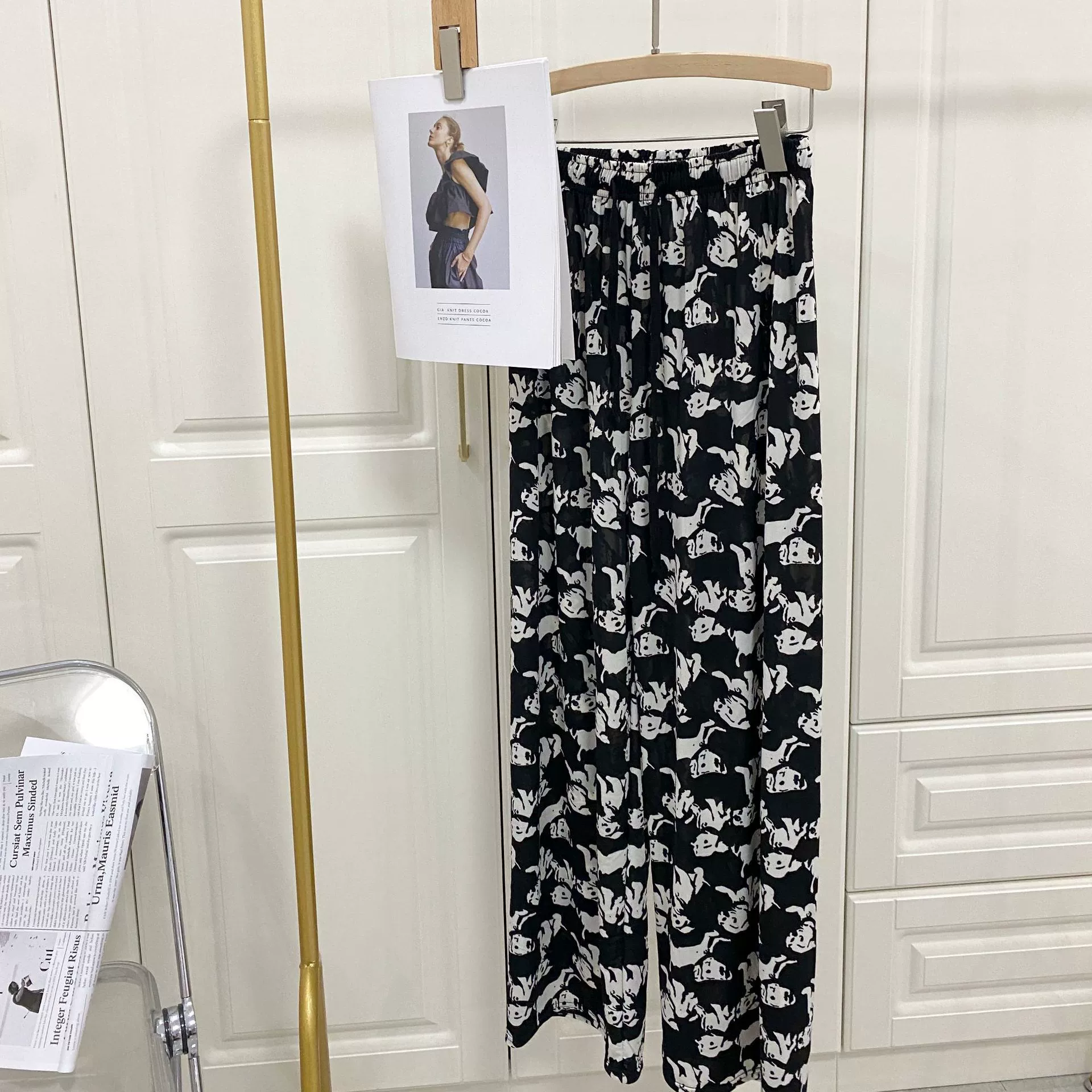 Summer ice silk thread wide-leg pants for women, thin, high-waisted, slim and drapey casual straight lengthened floor-length pants