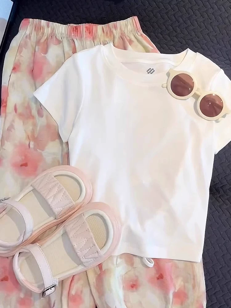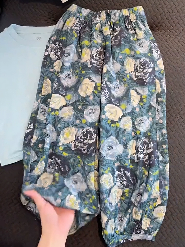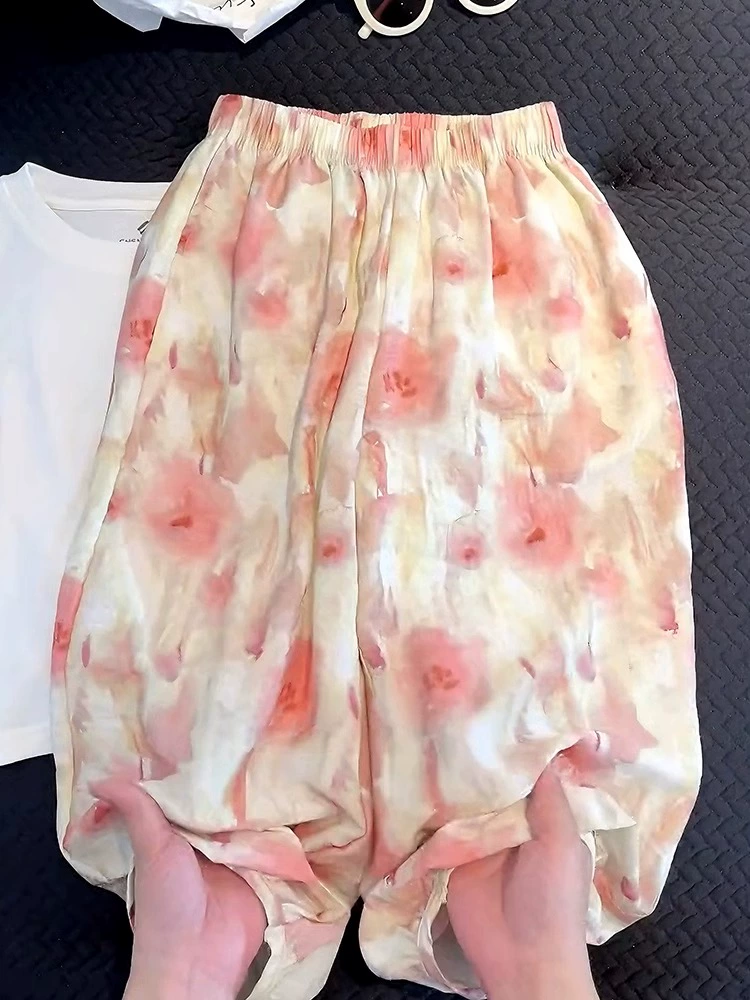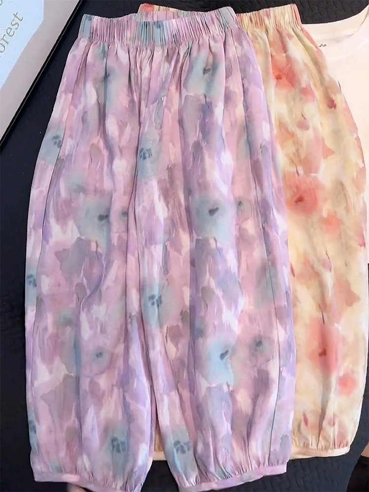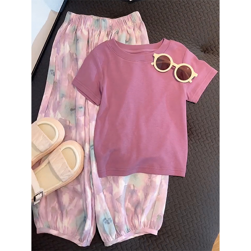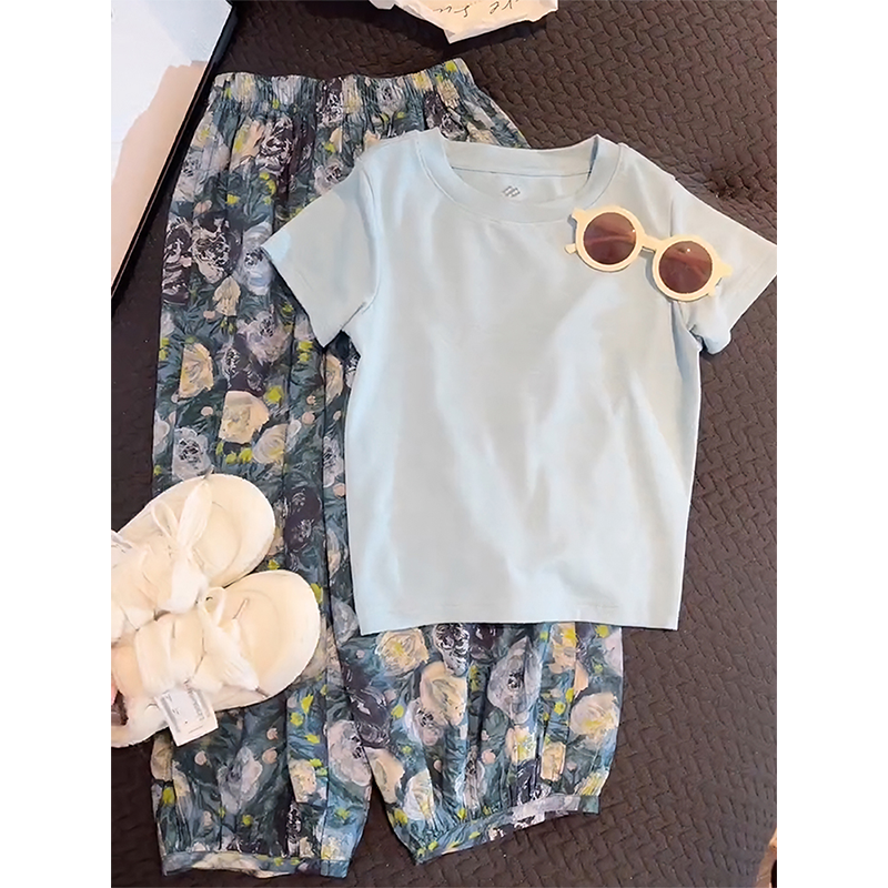 Summer ice silk two-piece set of thin lantern pants for children
