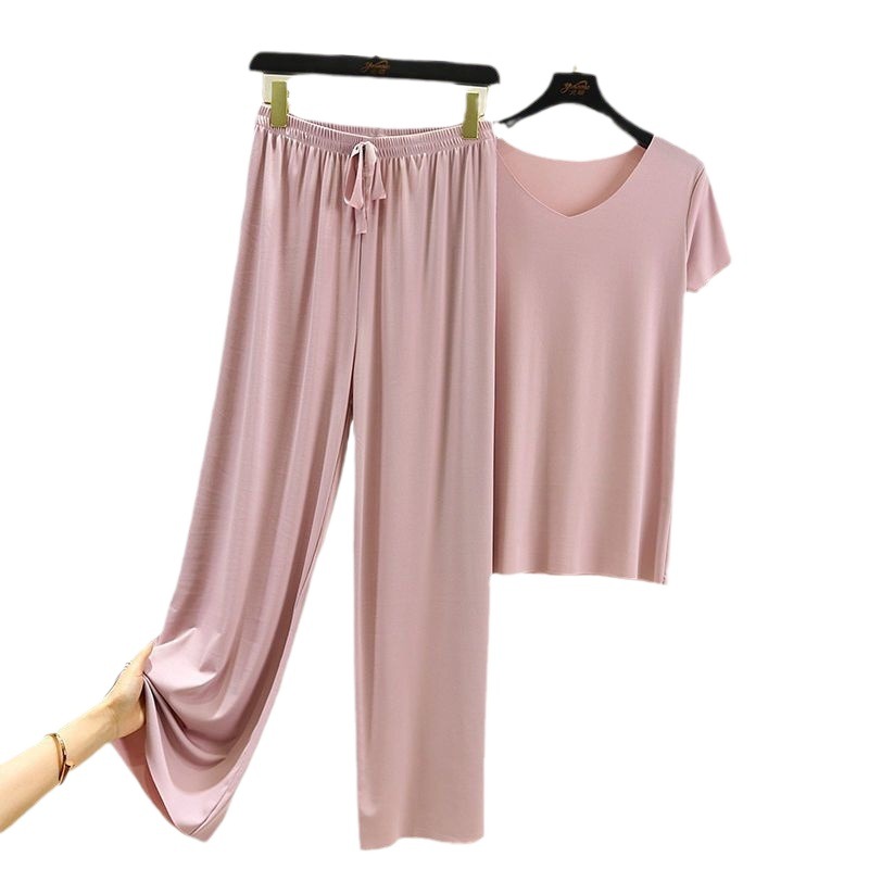 | nameOriginal | Summer Ice Silk Two-piece Suit Thin Women's Home Wear Short-sleeved Wide-leg Pants Top Loose Casual Wide-leg Pants Pajamas |