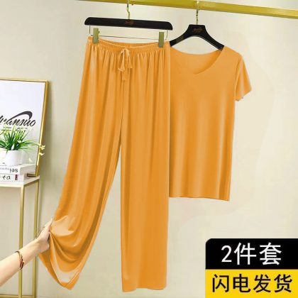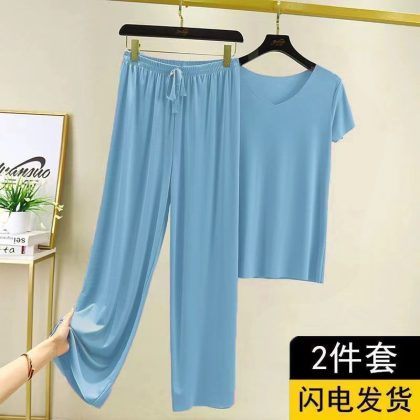 | nameOriginal | Summer Ice Silk Two-piece Suit Thin Women's Home Wear Short-sleeved Wide-leg Pants Top Loose Casual Wide-leg Pants Pajamas |