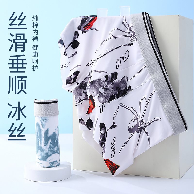 | nameOriginal | Summer ice silk underwear men's seamless printing cotton crotch waist men's boxer shorts teenagers shorts factory generation hair |