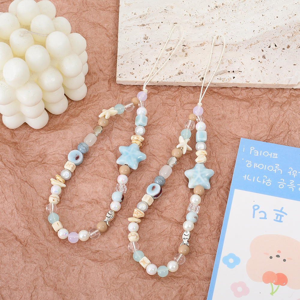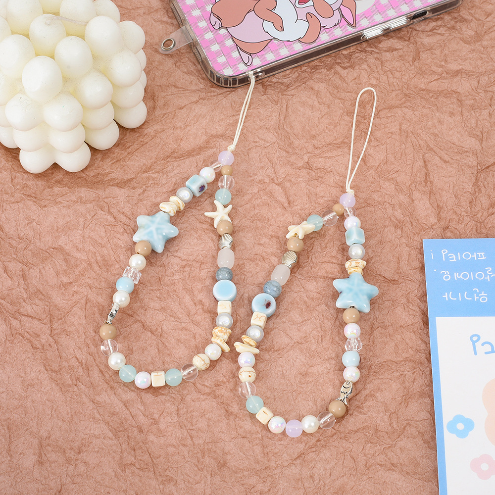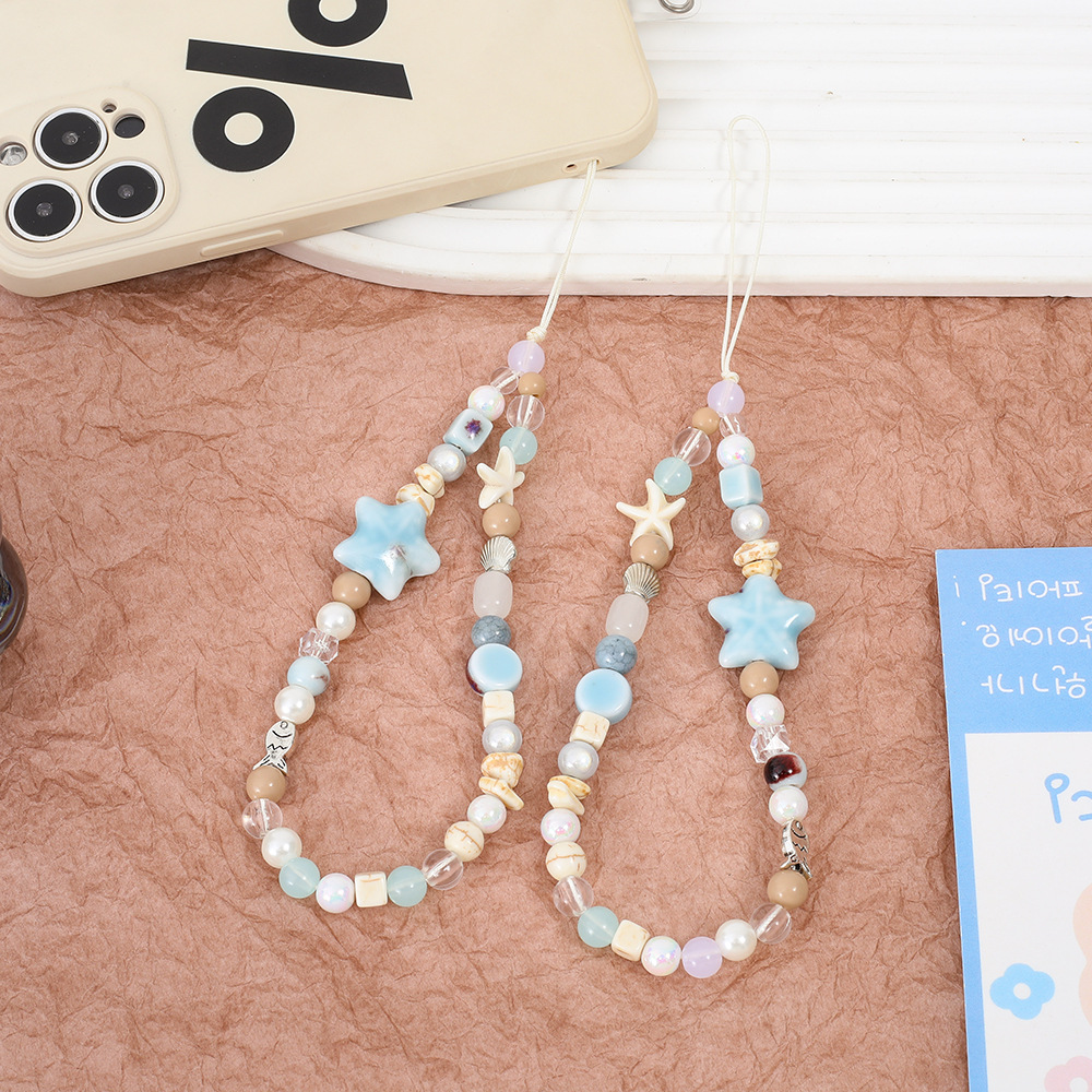 | nameOriginal | Summer ins sea breeze stars mobile phone chain fresh ccd lanyard diy pendant camera blue beads |