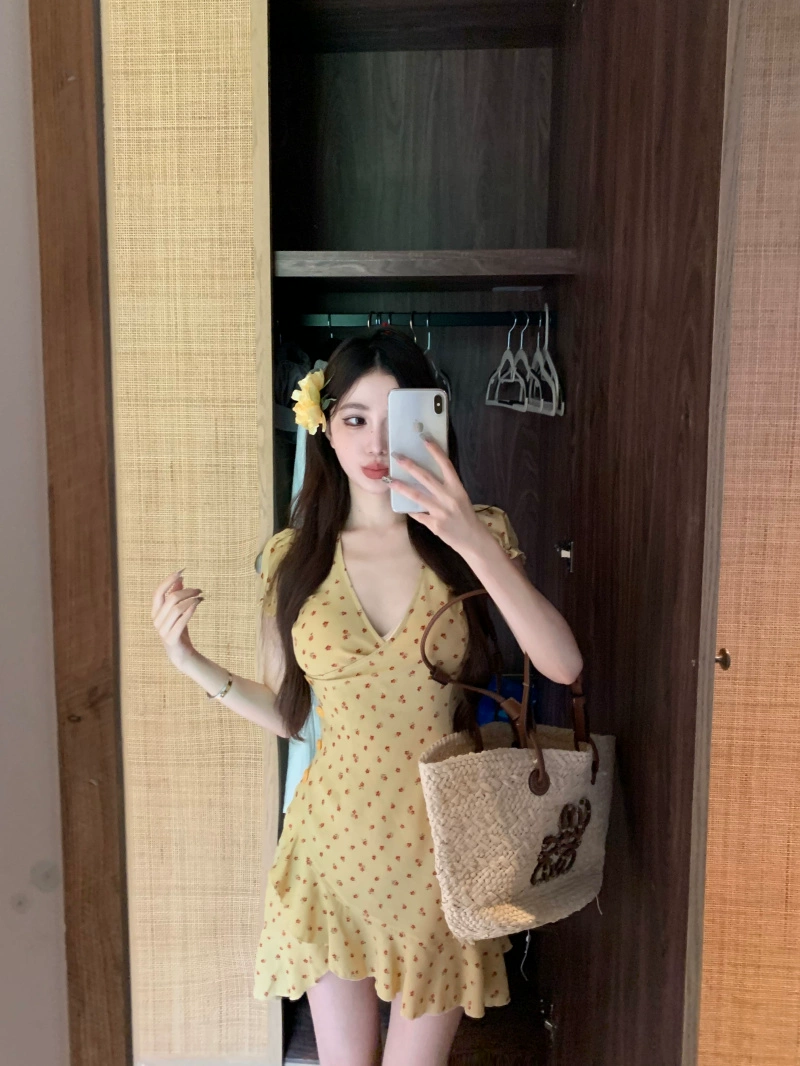 Summer irregular holiday style v-neck short-sleeved dress
