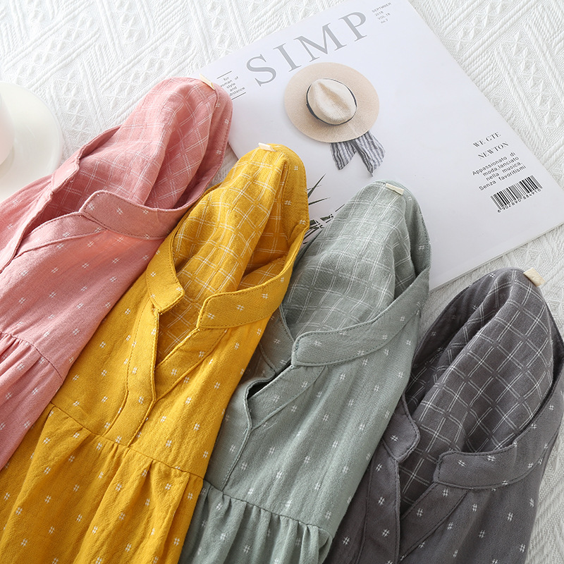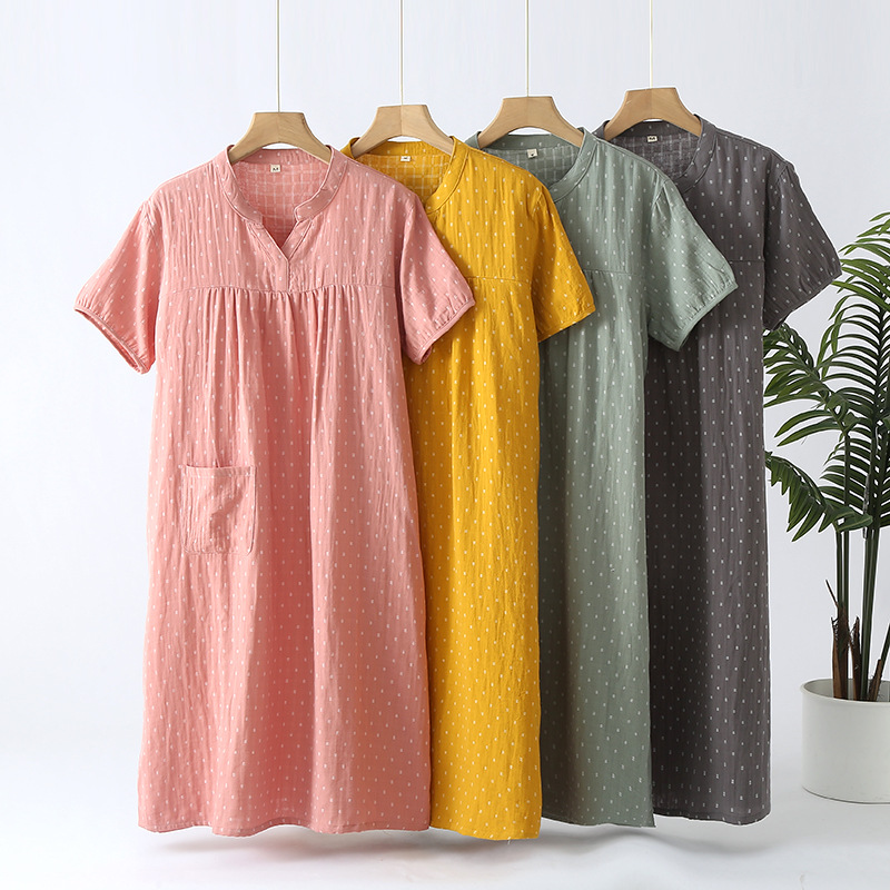 | nameOriginal | Summer Japanese Style Simple Pure Cotton Double-layer Yarn Women's Nightgown Spring and Autumn Thin Short-sleeved Home Nightgown Pajamas Long Skirt |