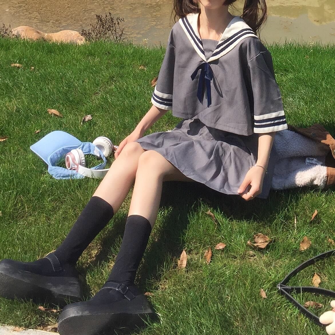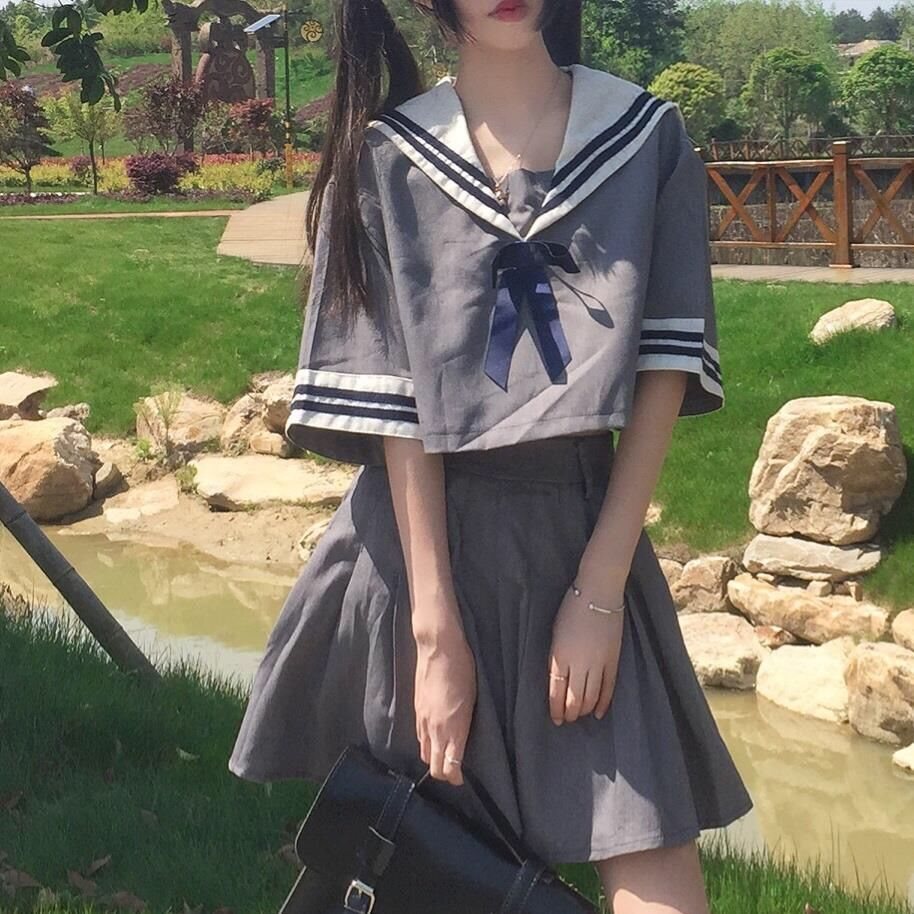 Summer JK Uniform Female Student Pleated Short Skirt suit Cute Korean Style College Style School Uniform Japanese Sailing Suit Skirt